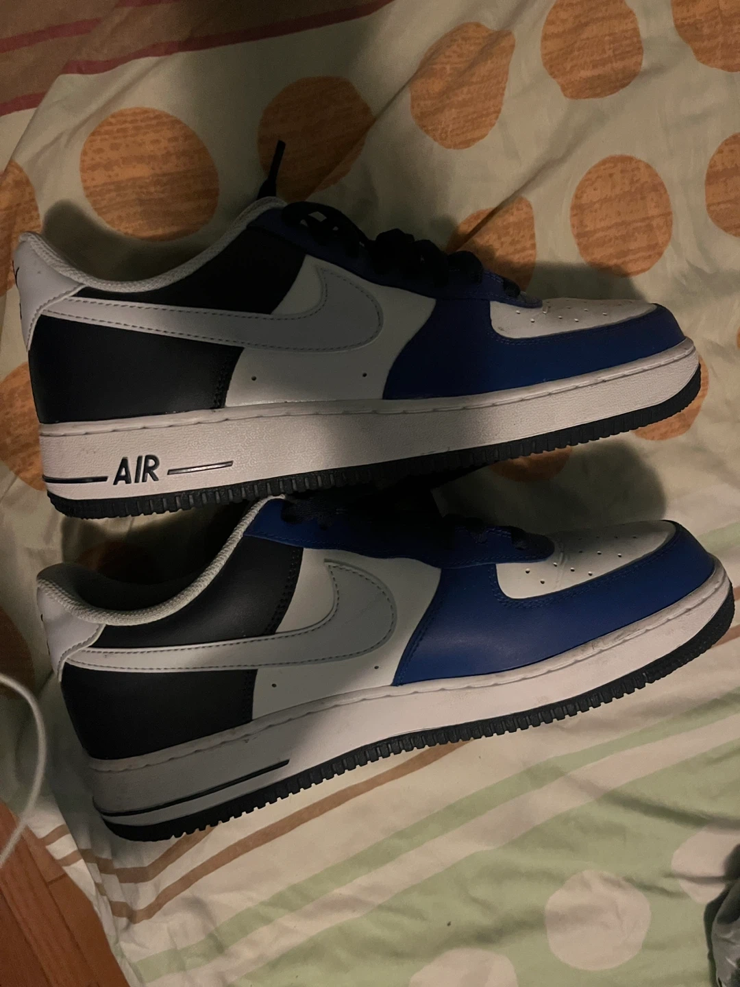 Selling a pair of Nike Air Force 1 sneakers in a blue and white colorway. They show some signs of wear, as pictured, but still have plenty of life left! Perfect for everyday wear or adding to your sneaker collection