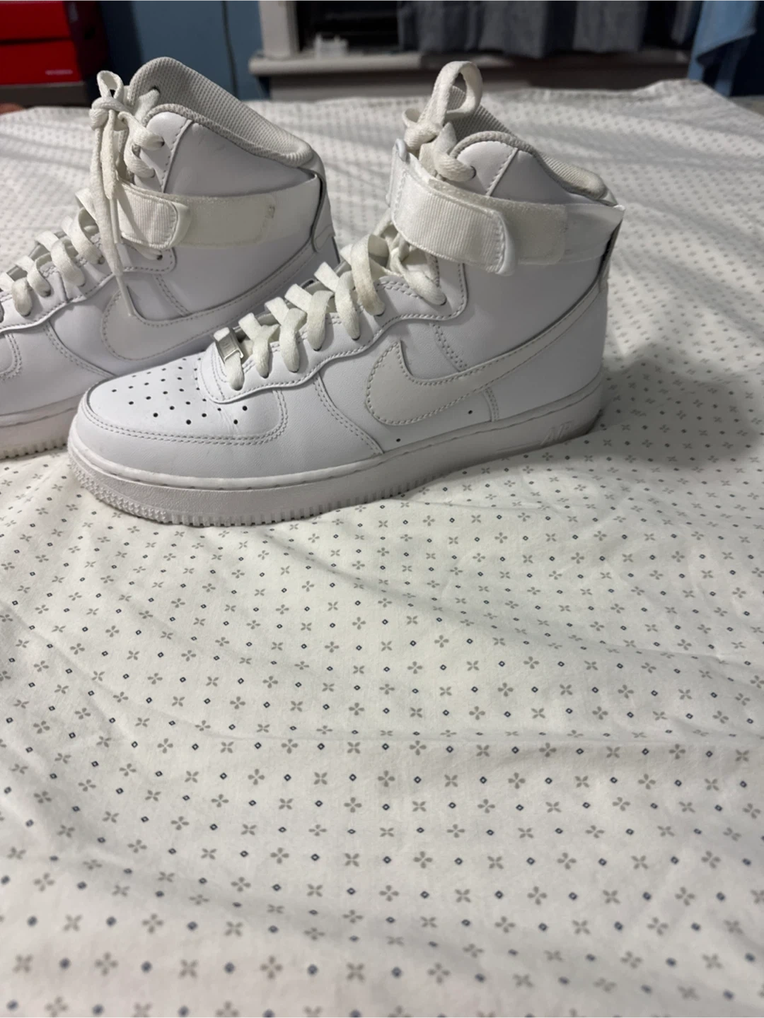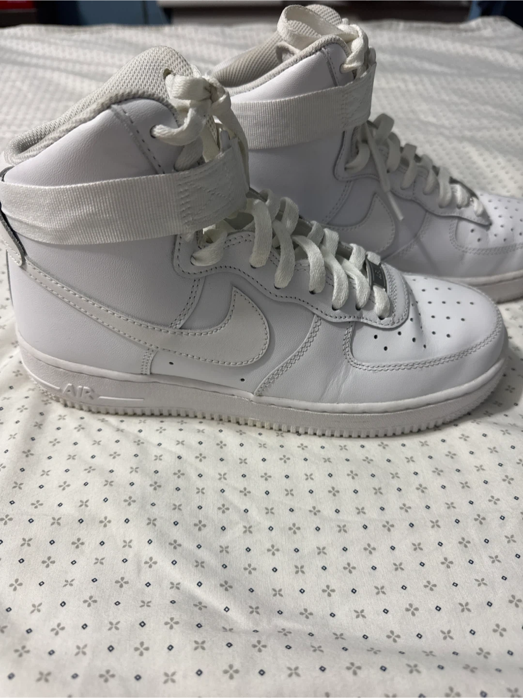 Selling a pair of Nike Air Force 1 High '07 in all white! They're in good condition and a classic style that goes with everything. Size is a US men's 8.5.