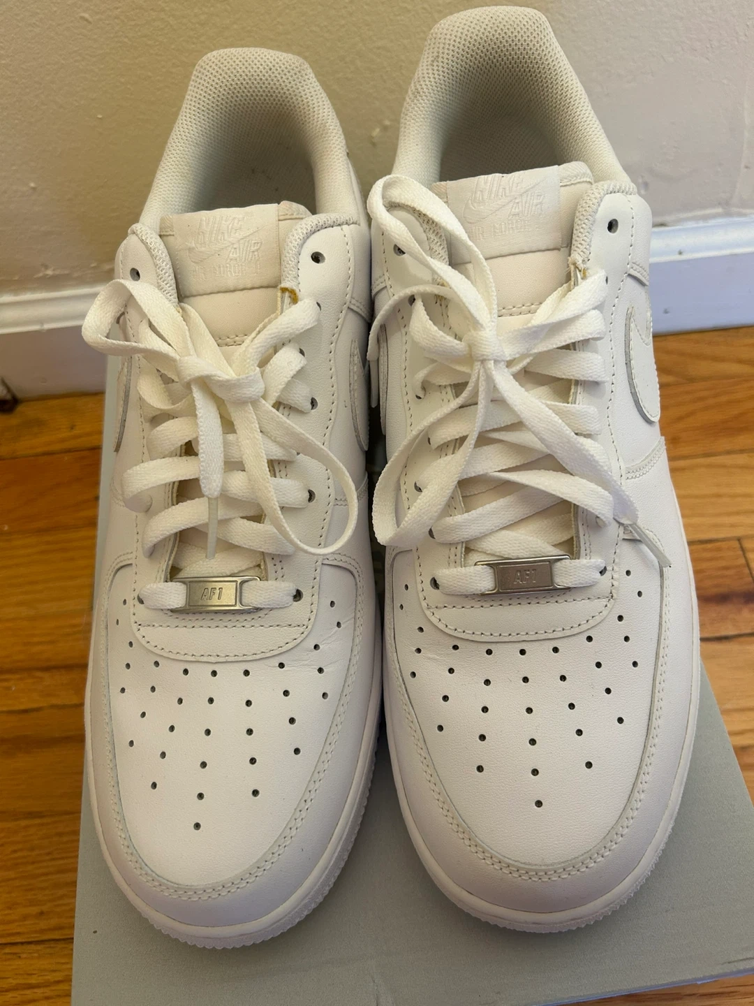 Selling a pair of Nike Air Force 1 Low in white. They are in great condition and come with the original box. The size is a US size 12. Perfect for everyday wear!