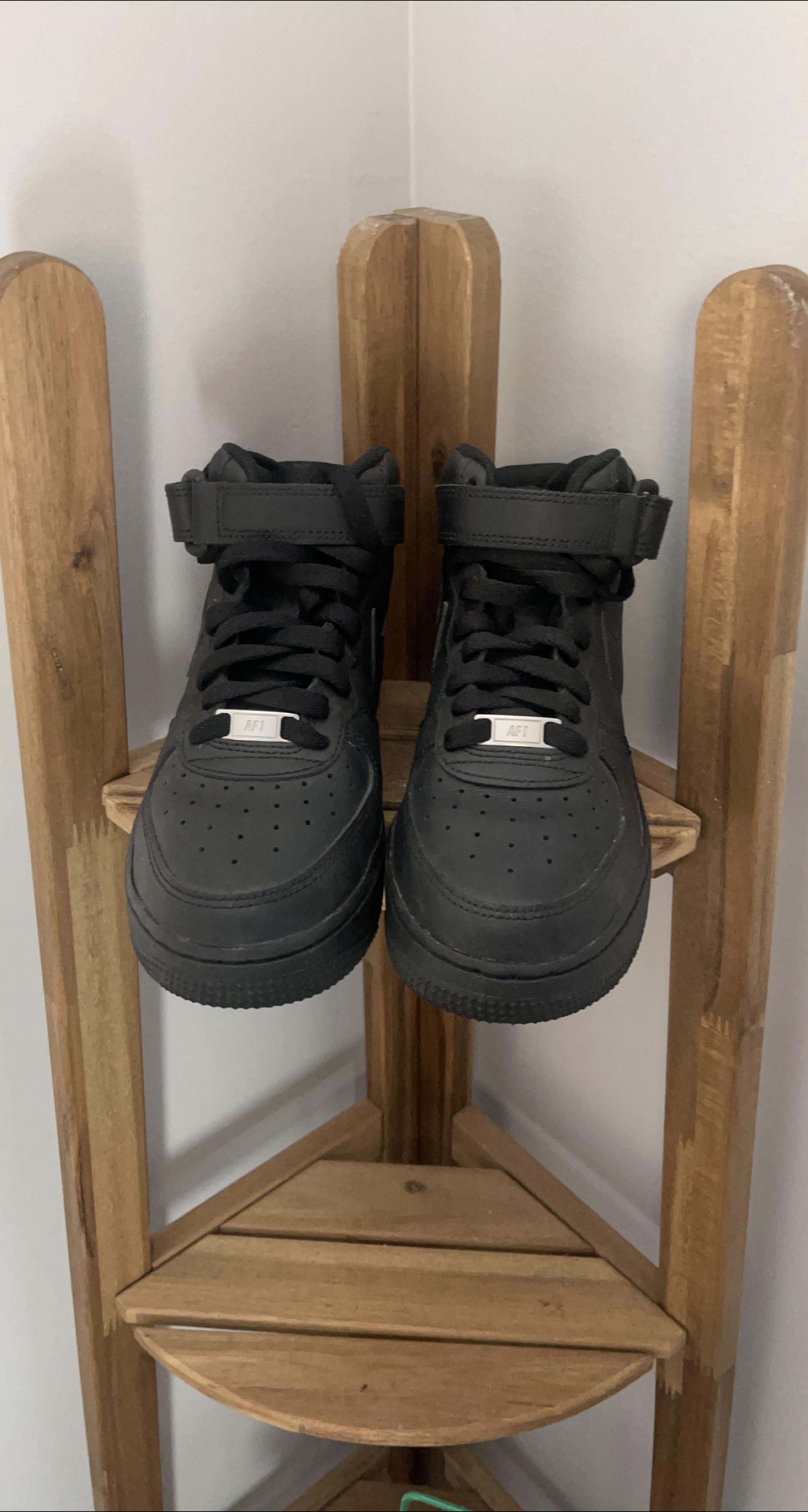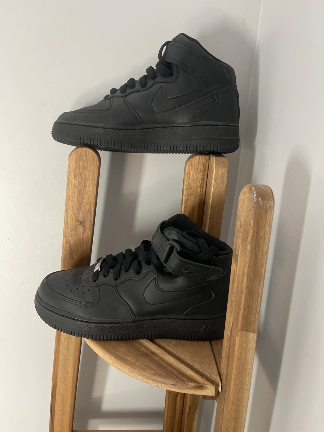 Selling a pair of Nike Air Force 1 Mid sneakers in black Size 4 grade school 5.5 women. They are in good condition and ready for a new owner! Perfect for everyday wear and a classic style.