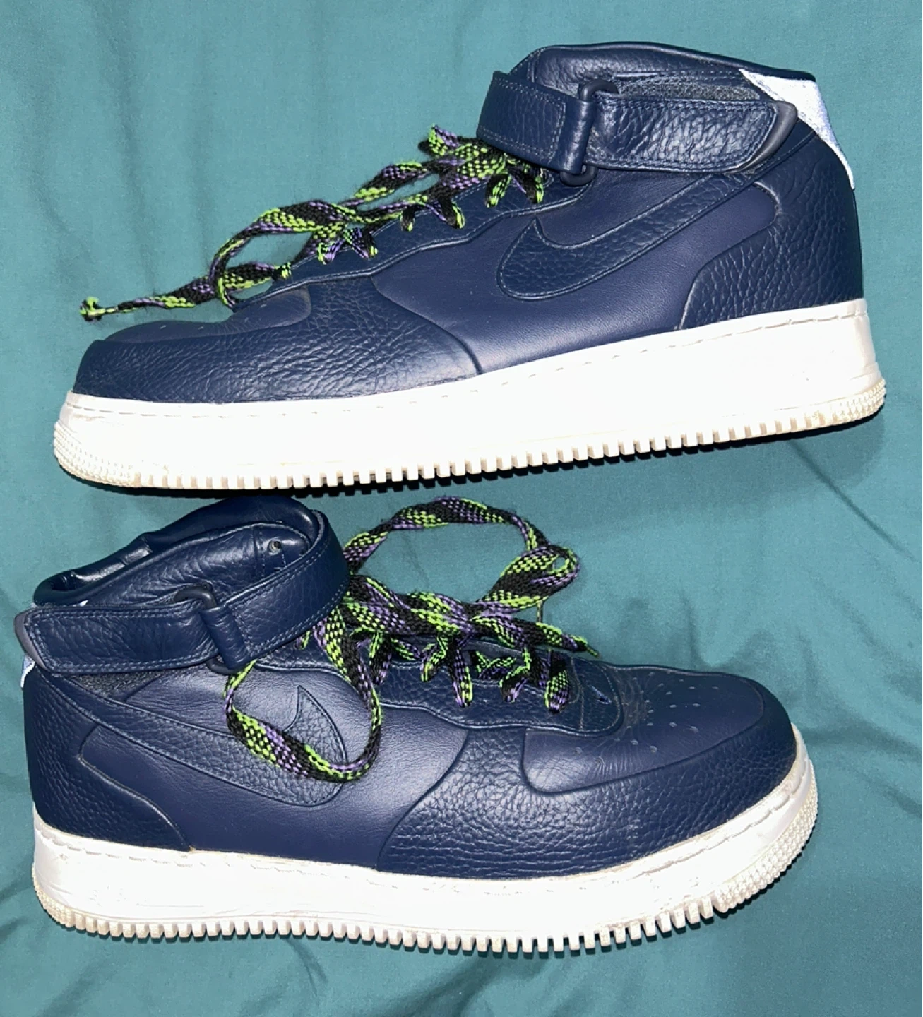1000+Selling a pair of men’s Nike Air Force 1 Mid sneakers in navy blue. Very gently loved condition. Size 11.5. (EU 45.5).