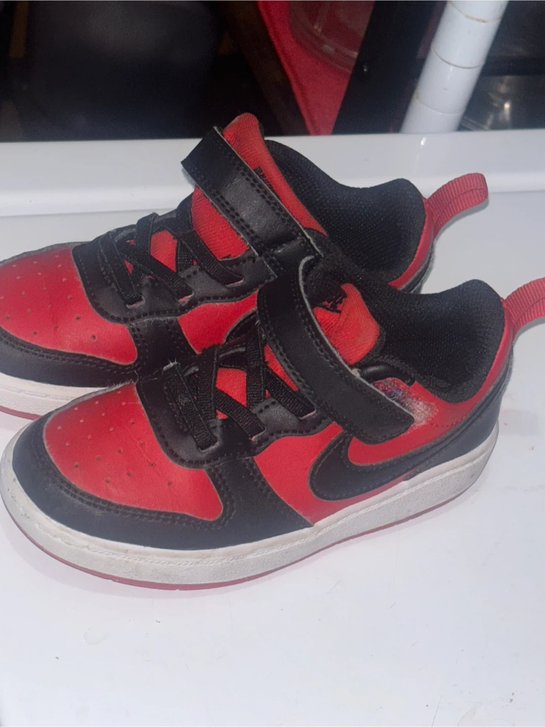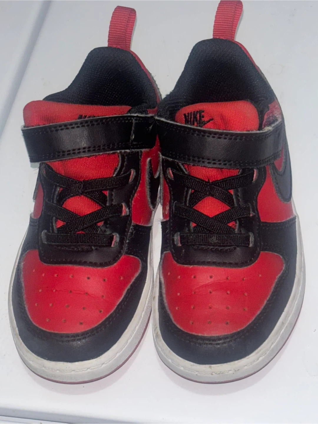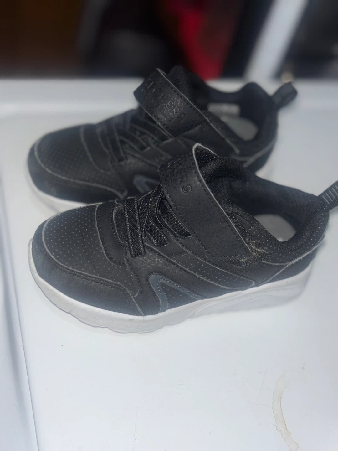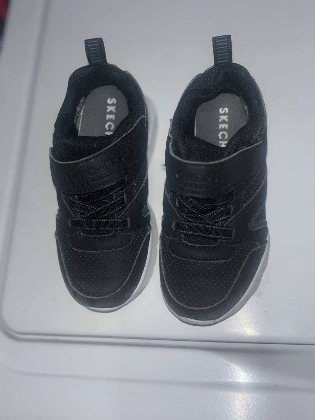 Selling a pair of Nike Air Force And Skechers toddler sneakers. They have a velcro strap and are in used condition.