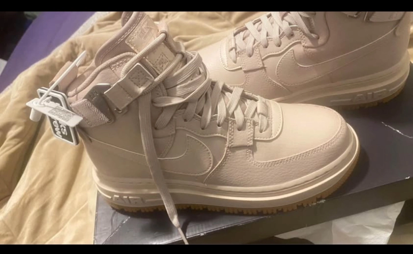 Women's high top sneakers. Light beige leather. Size US 8. New in box.