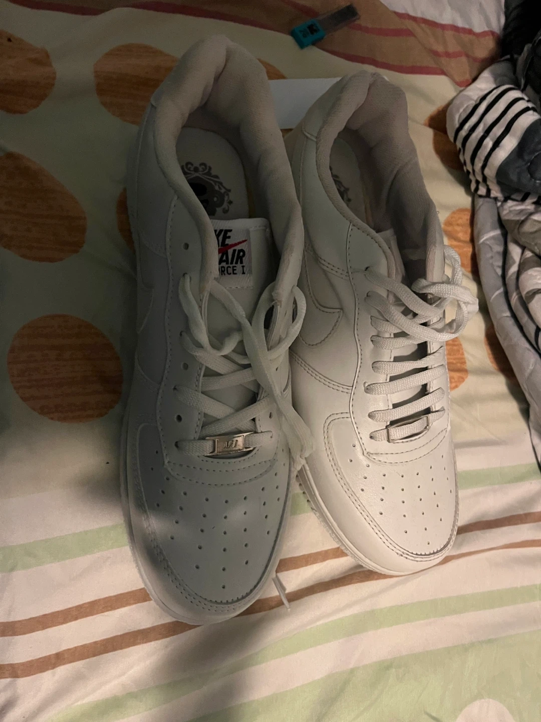 15Selling a pair of Nike Air Force 1 sneakers in white. They're in good condition and ready for a new home! These are a classic style that goes with everything