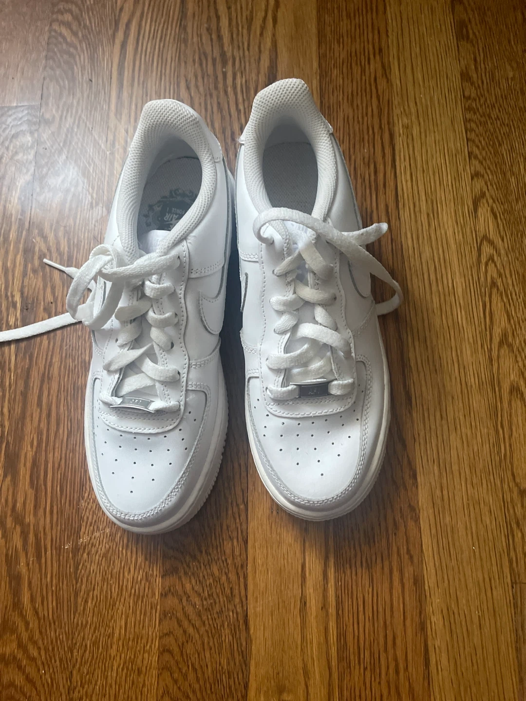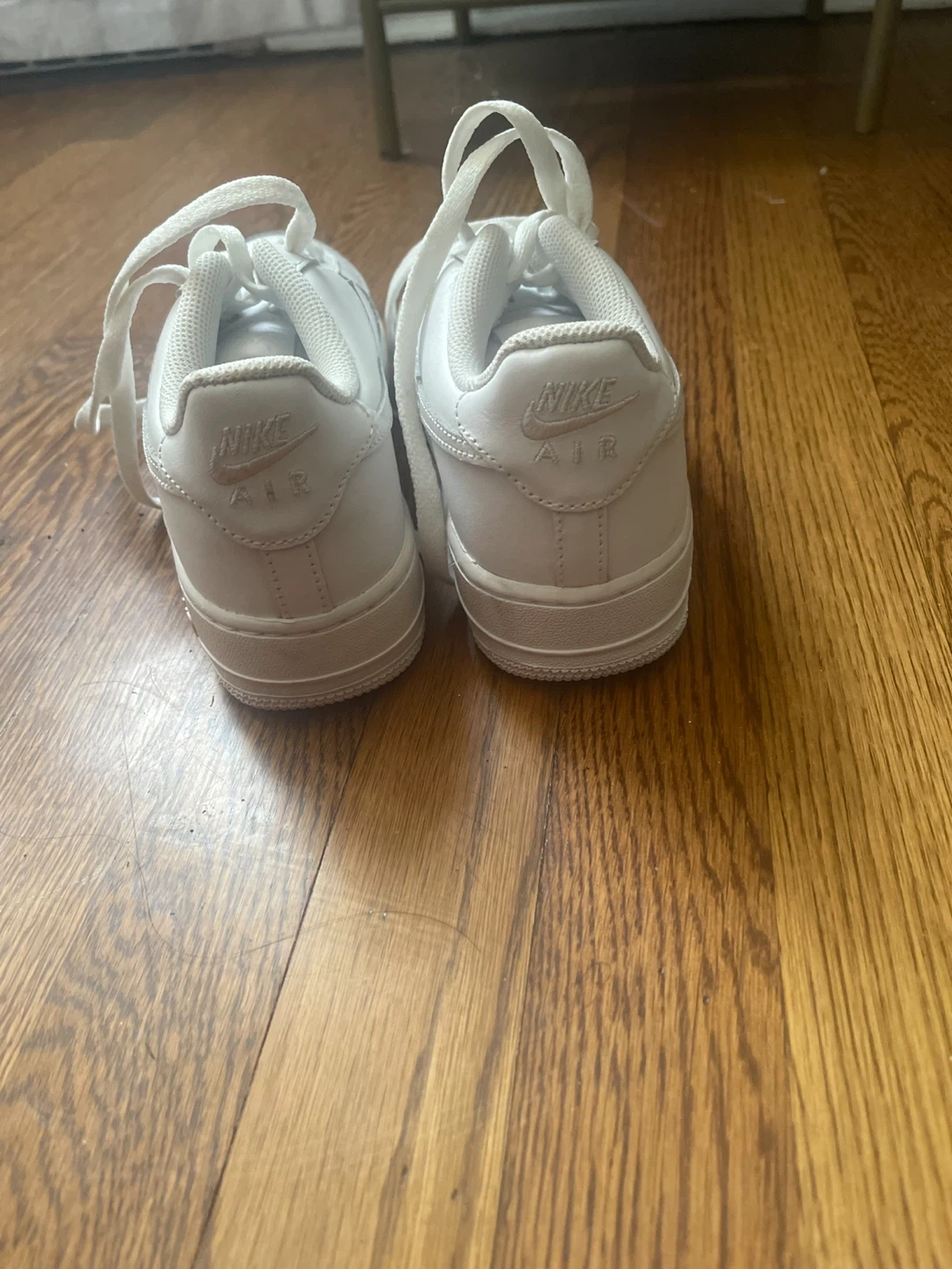 Selling a pair of white Nike Air Force 1 sneakers! They have some signs of wear, as you can see in the pictures, but still have plenty of life left. Great for everyday wear!