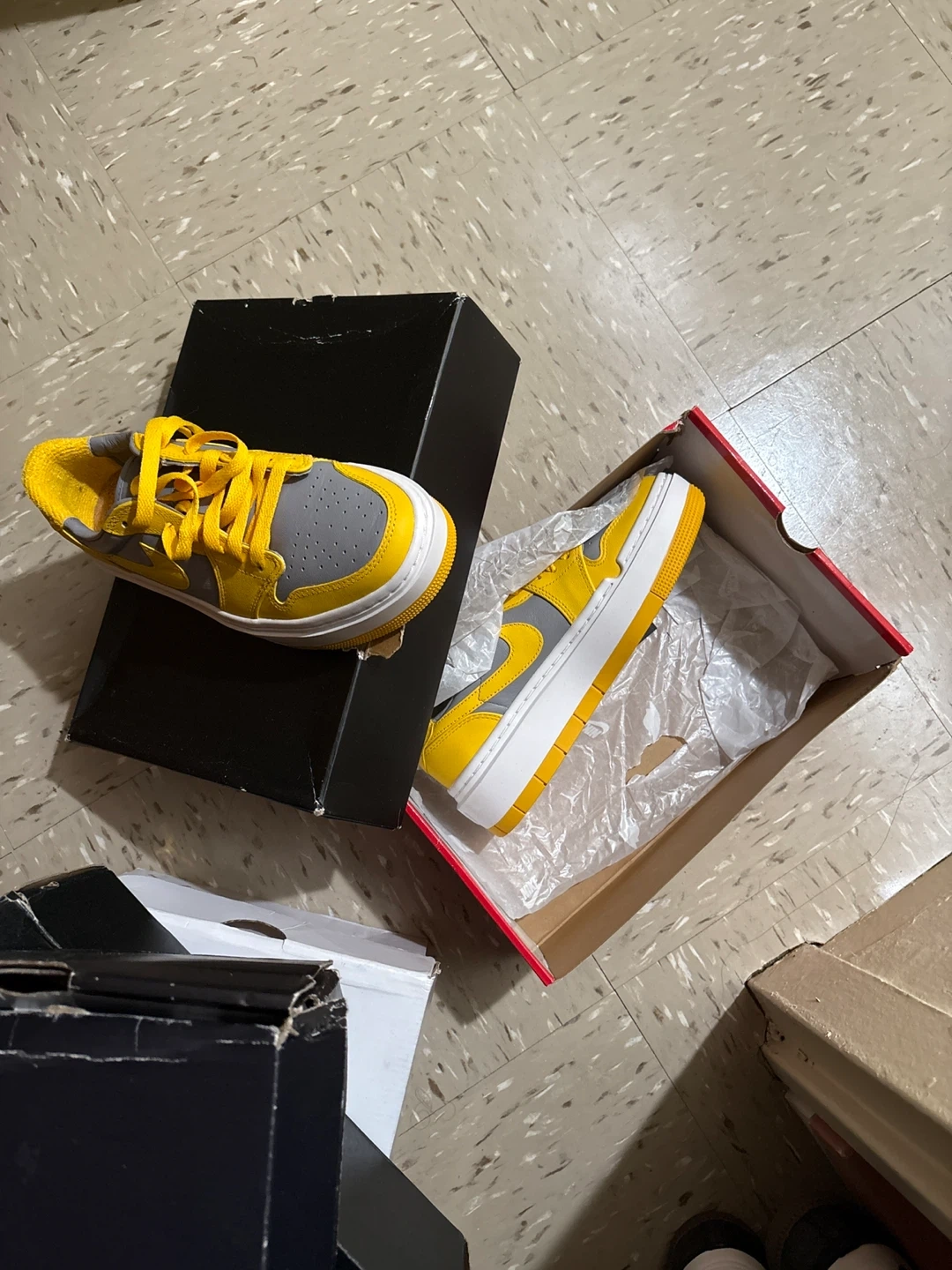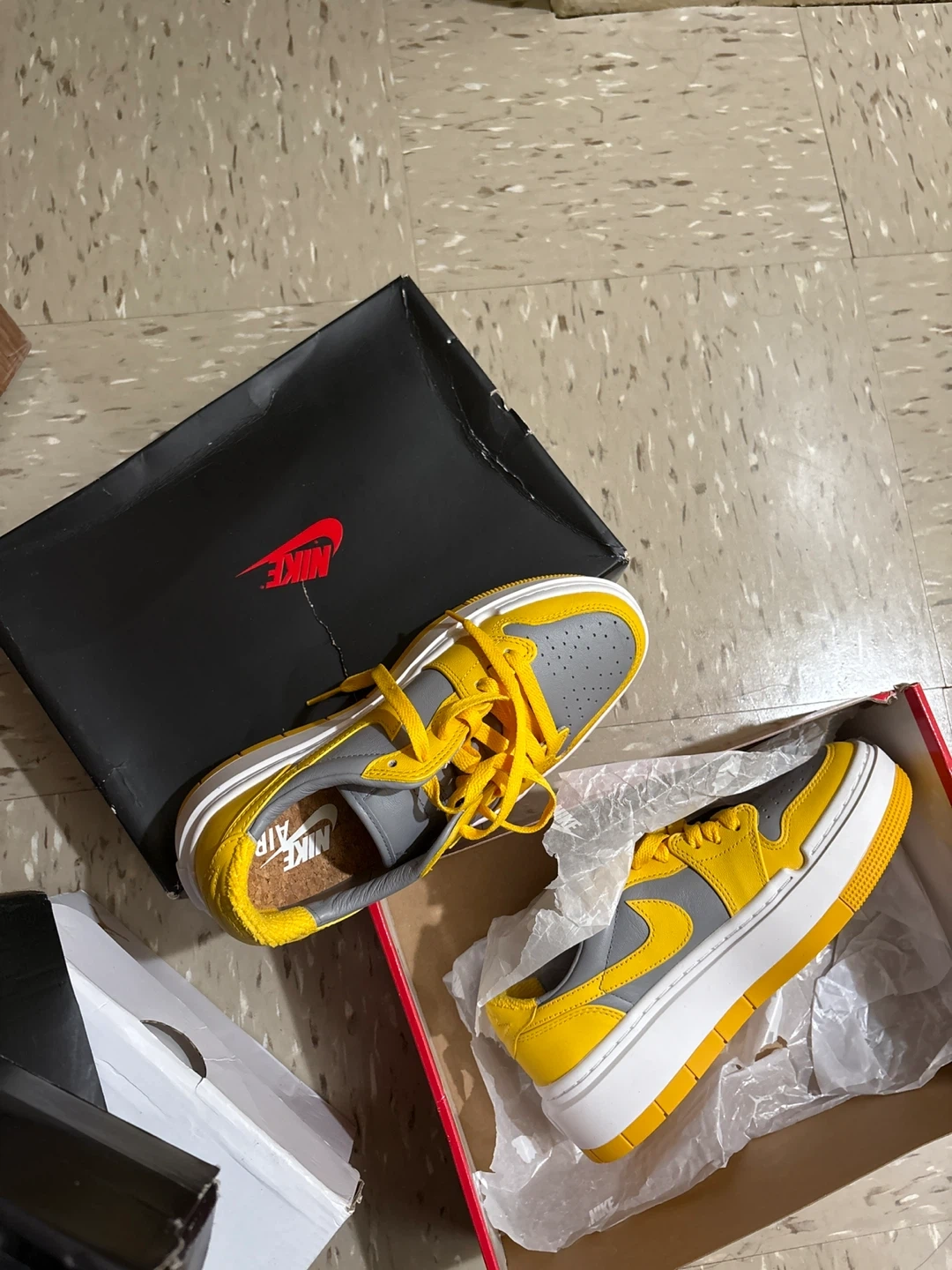 Selling a pair of Nike Air Force 1 shoes in a vibrant yellow and gray colorway! They come with the original box