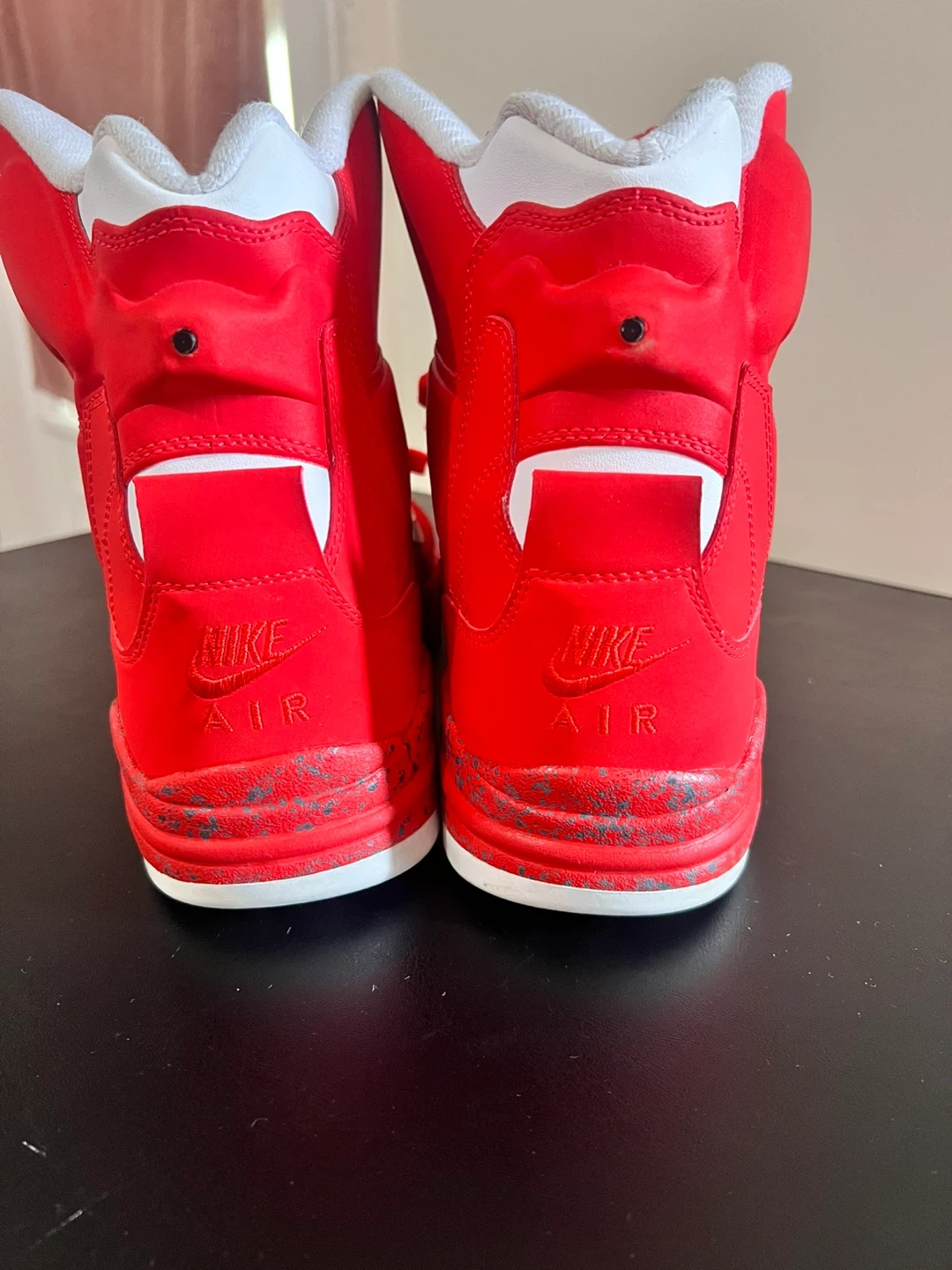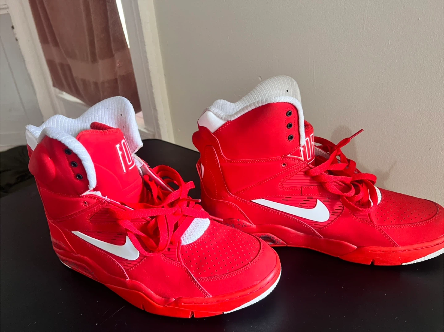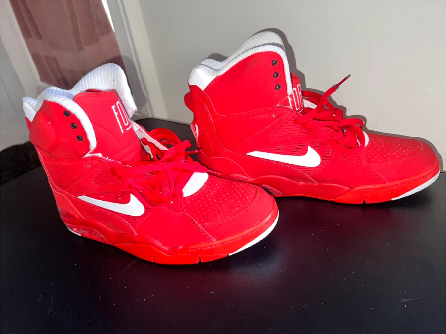 Selling a pair of red Nike Air Force high-tops! They're in good condition and ready for a new home. The iconic design and vibrant color make them a standout choice