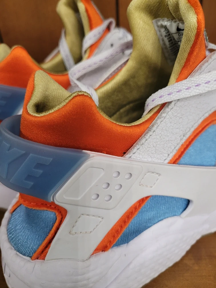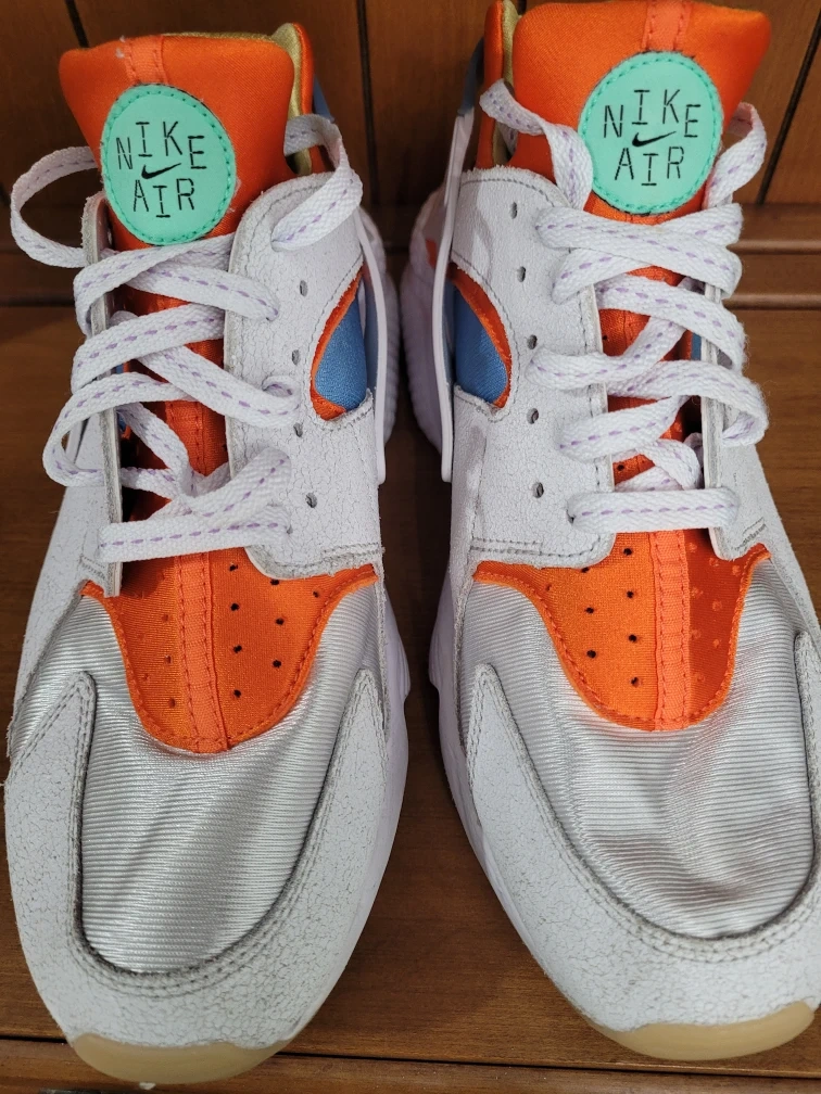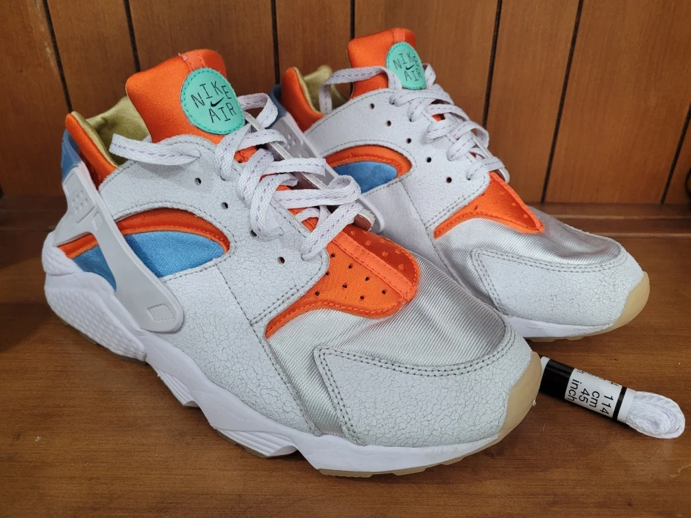 60Nike Air Huarache Shoes White Orange Men's Sizes 10.5