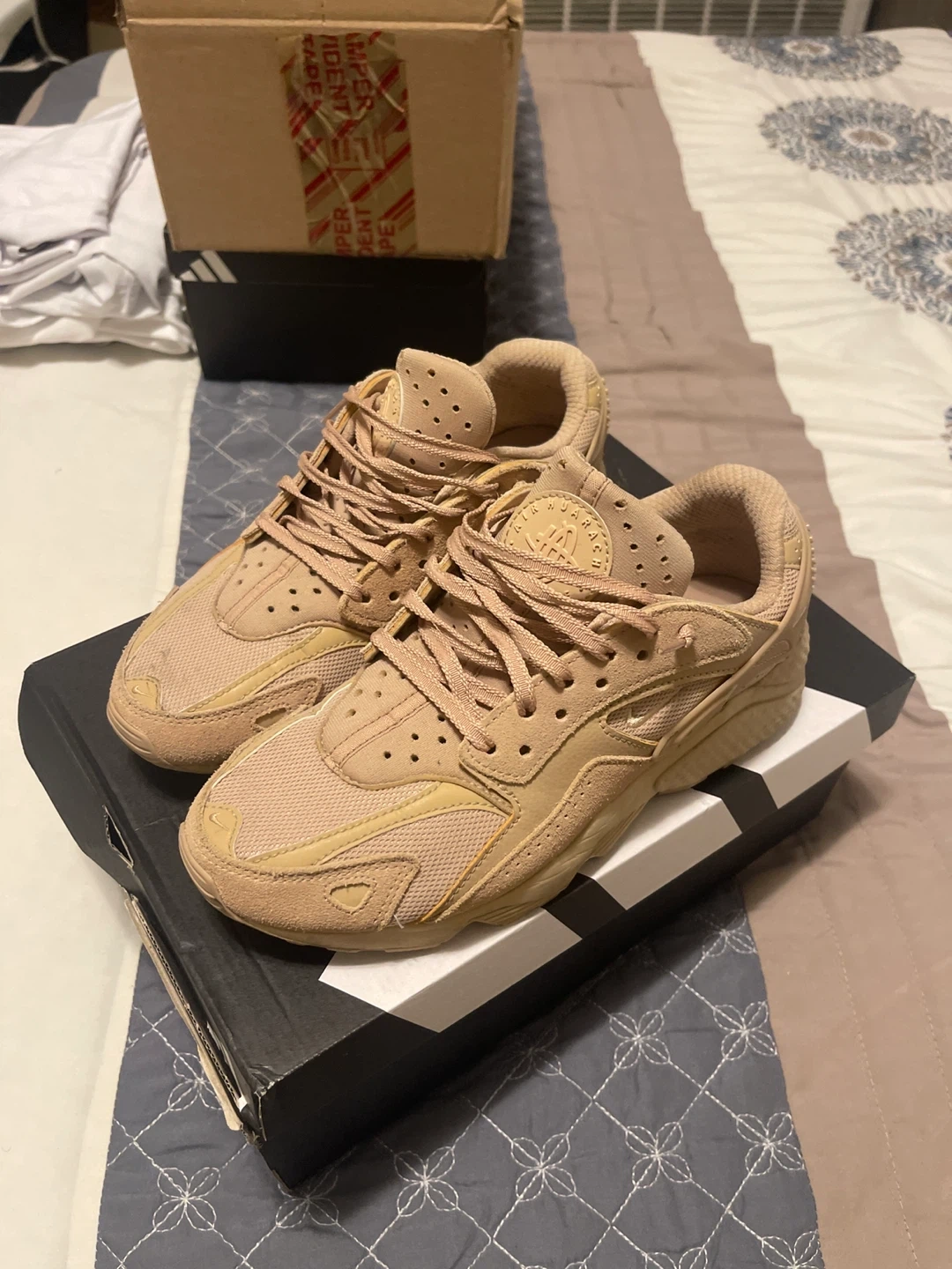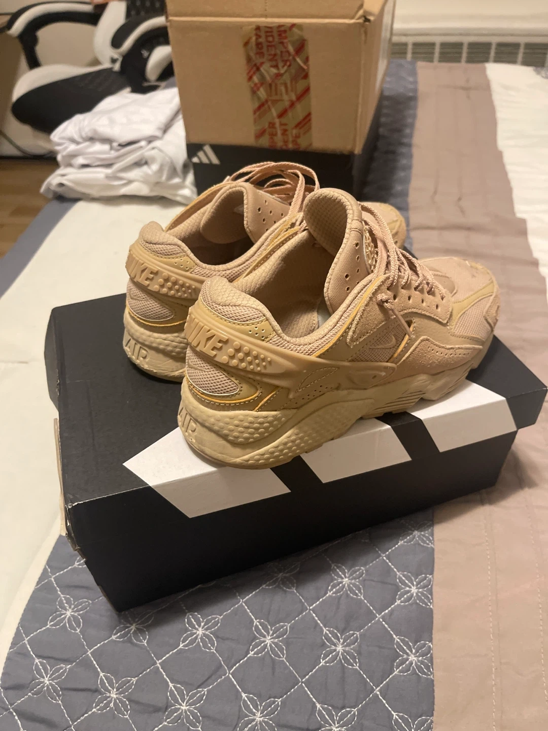23Selling a pair of Nike Air Huarache sneakers in a tan color. They come with the original box. These sneakers are lightweight and comfortable, perfect for everyday wear. Feel free to ask any questions!