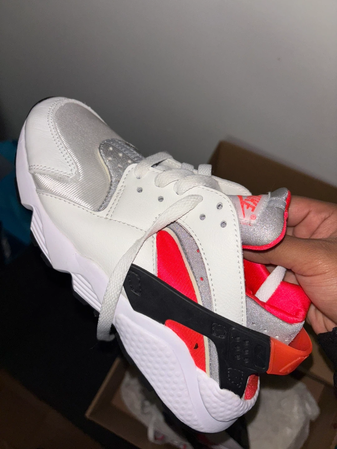 65Selling a pair of Nike Air Huarache sneakers. These are in great condition and feature a clean white and red colorway. Perfect for casual wear or workouts!