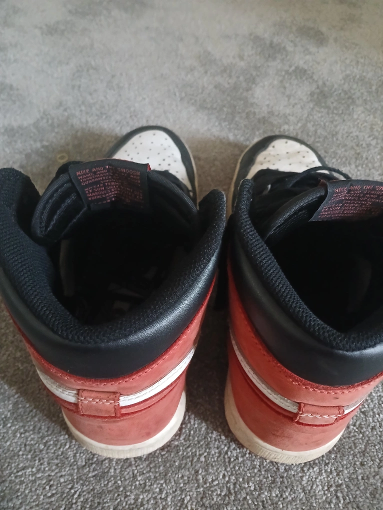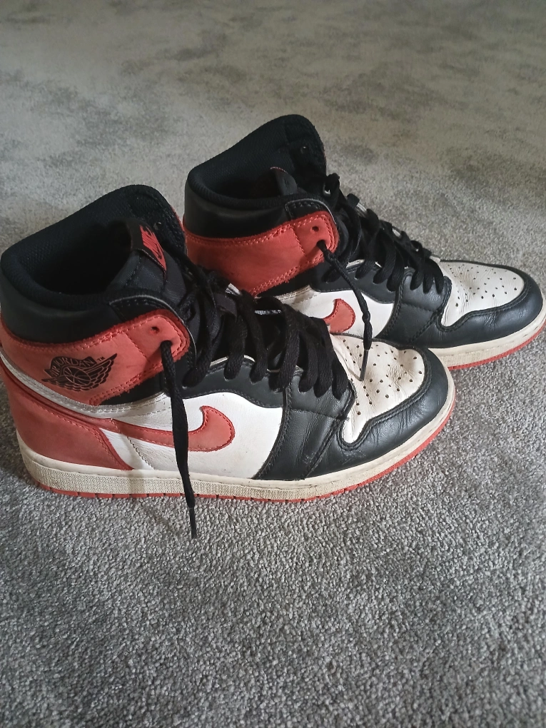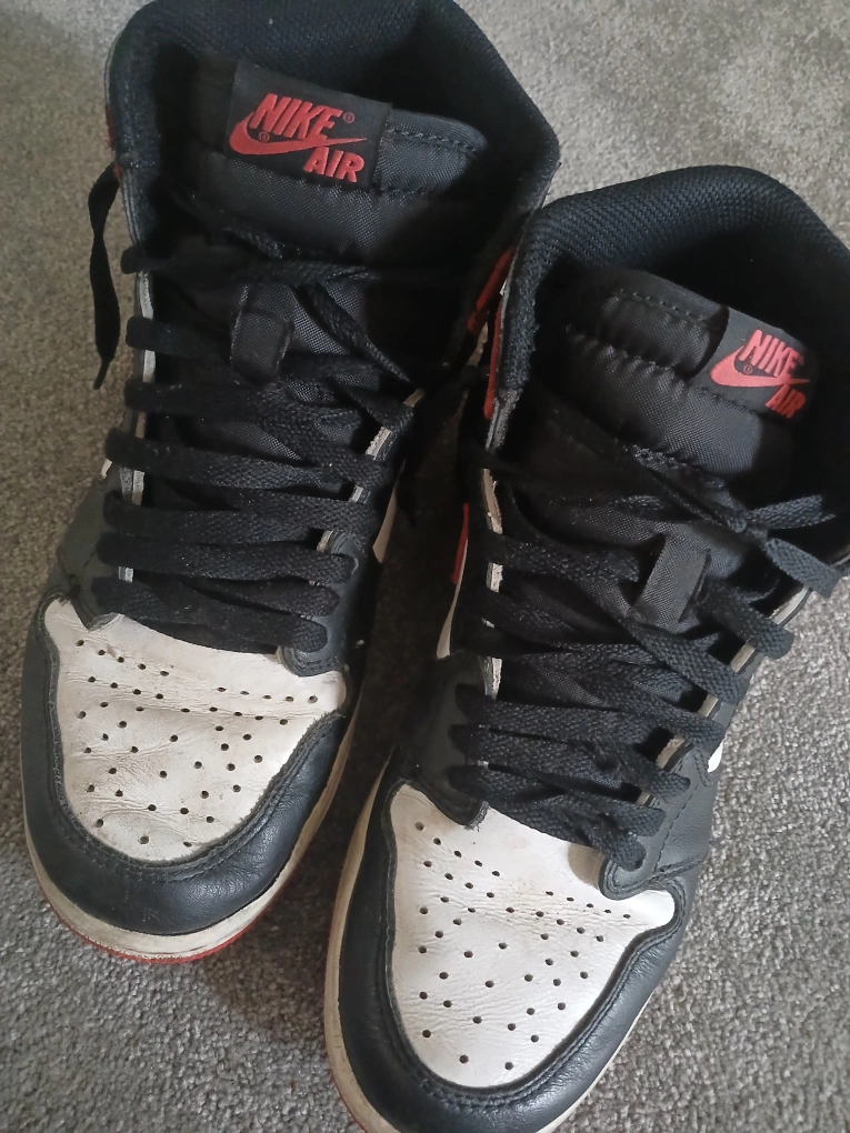 THERE $40 NOT $45. Selling a pair of Nike Air Jordan 1 High sneakers. They're in used condition, as you can see in the photos. Still have a lot of life left!