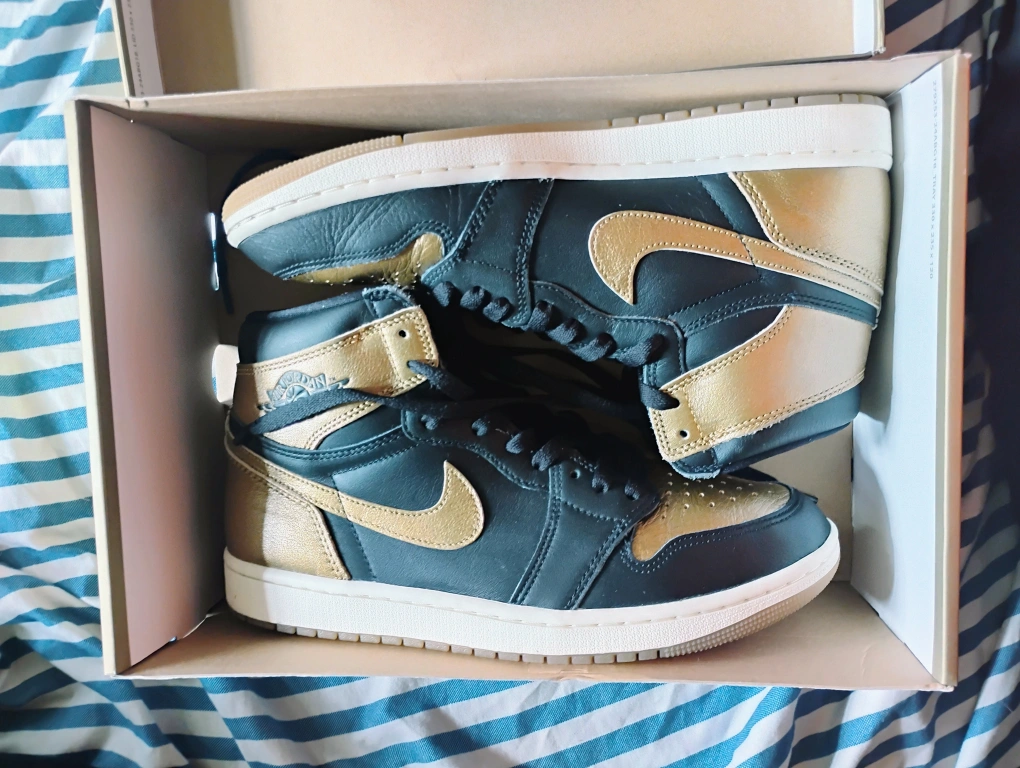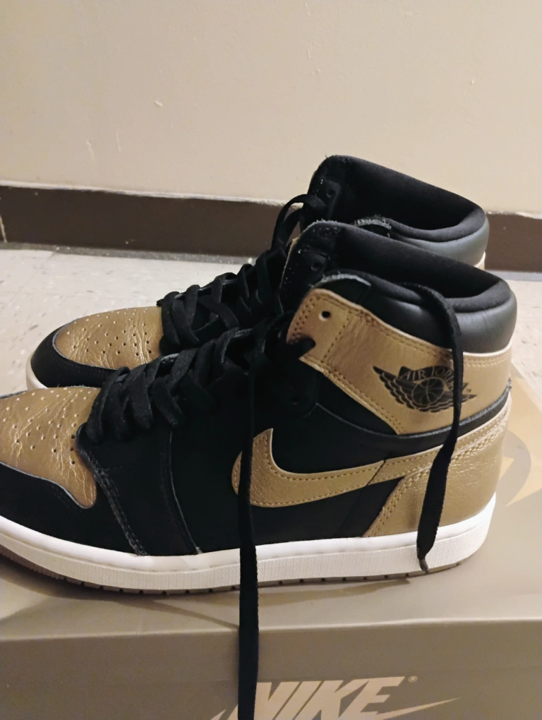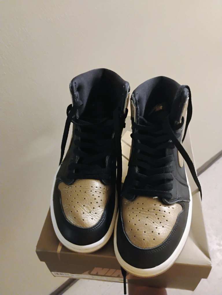 Selling a pair of Nike Air Jordan 1 High OG in the Bronze Eclipse colorway. They're in great condition and ready for a new home!