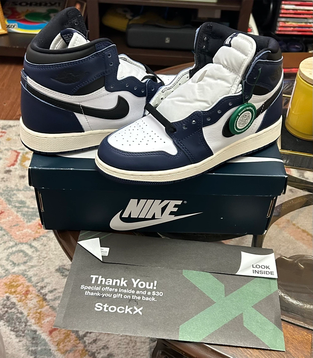 65Selling a pair of Nike Air Jordan 1 High OG sneakers in the "Midnight Navy" colorway! They come with the original box. These stylish sneakers are in great condition and ready for a new home. Perfect for any sneaker enthusiast!