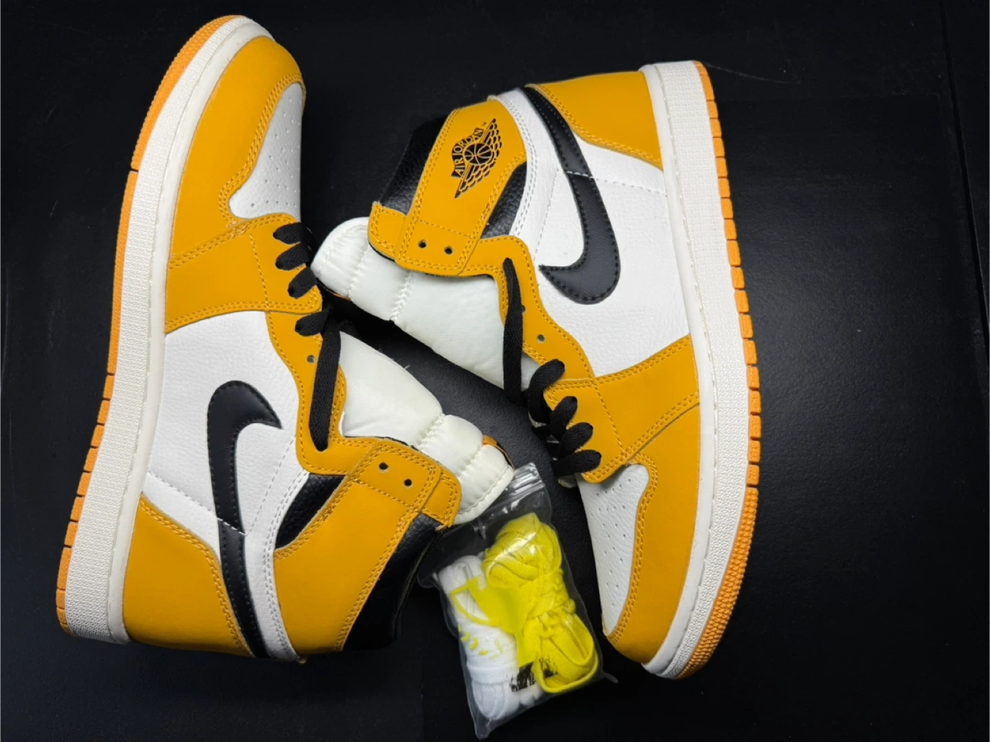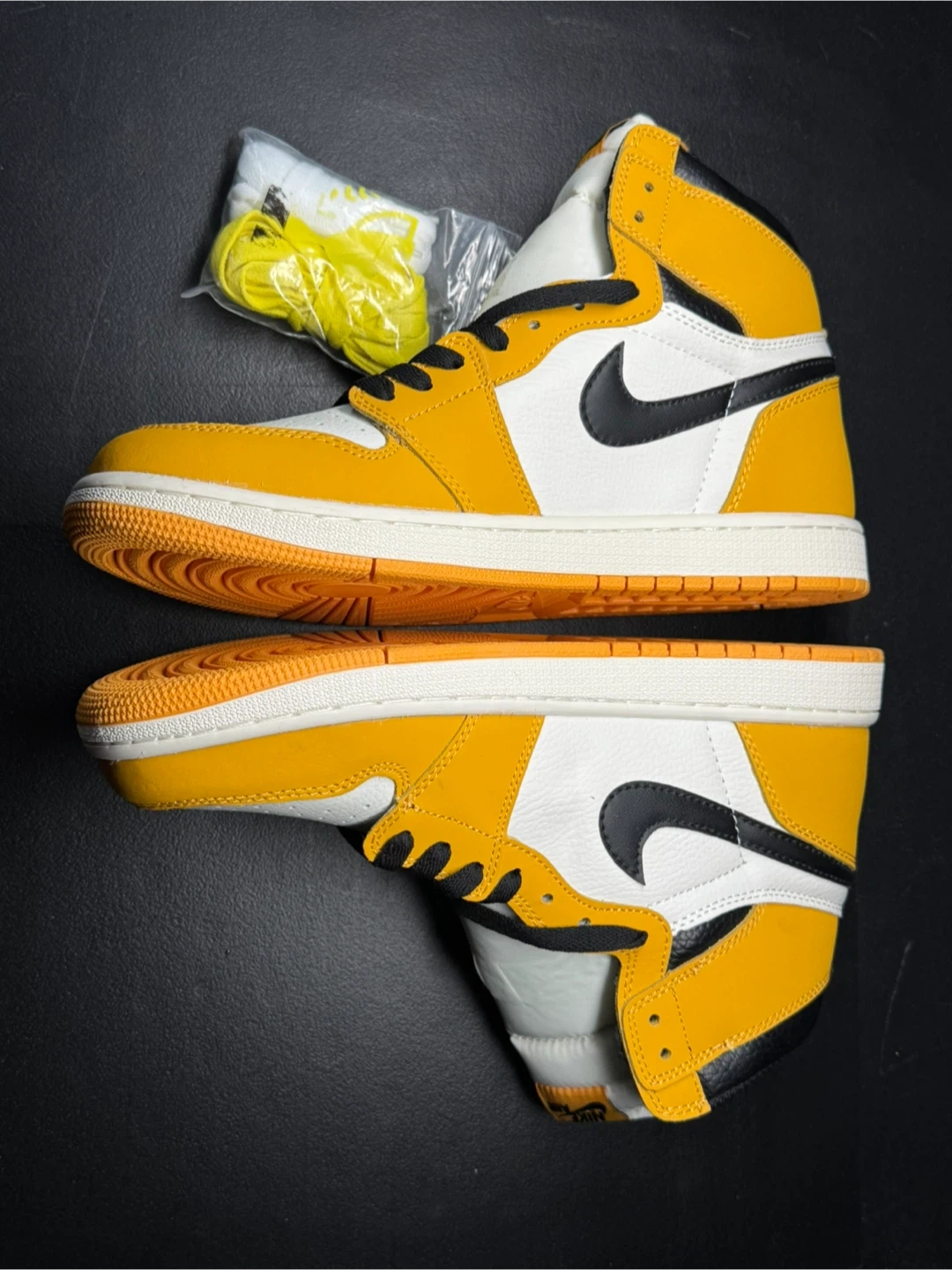 Selling a pair of Nike Air Jordan 1 High OG in the Taxi Yellow colorway. These come with an extra set of yellow laces. Great condition!
