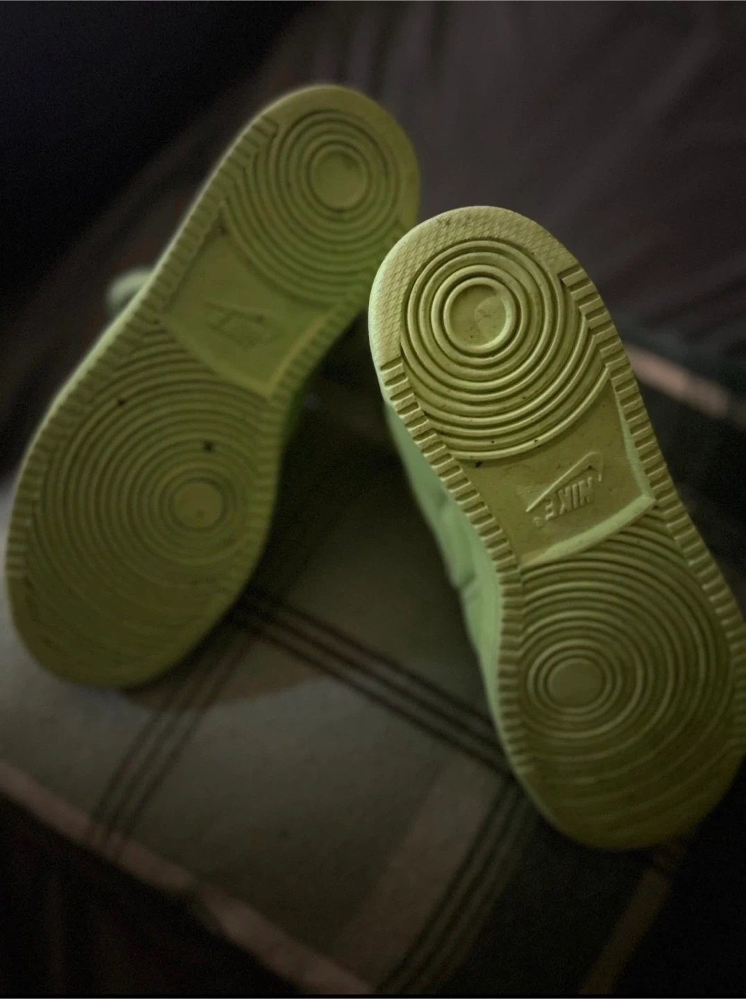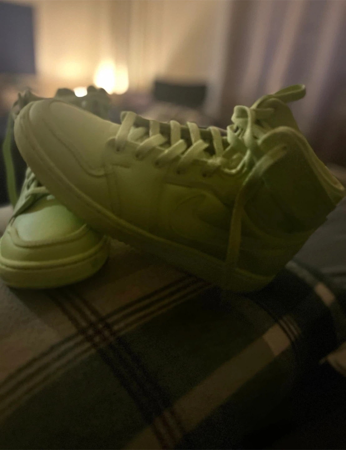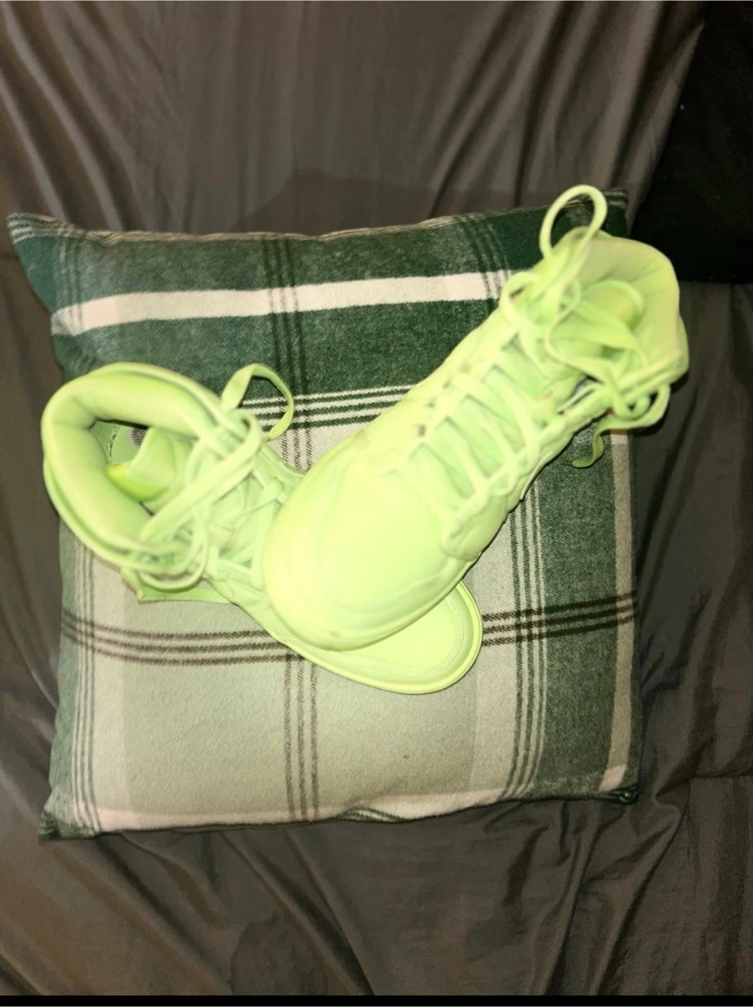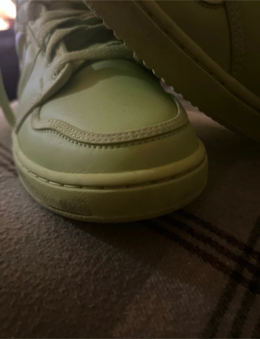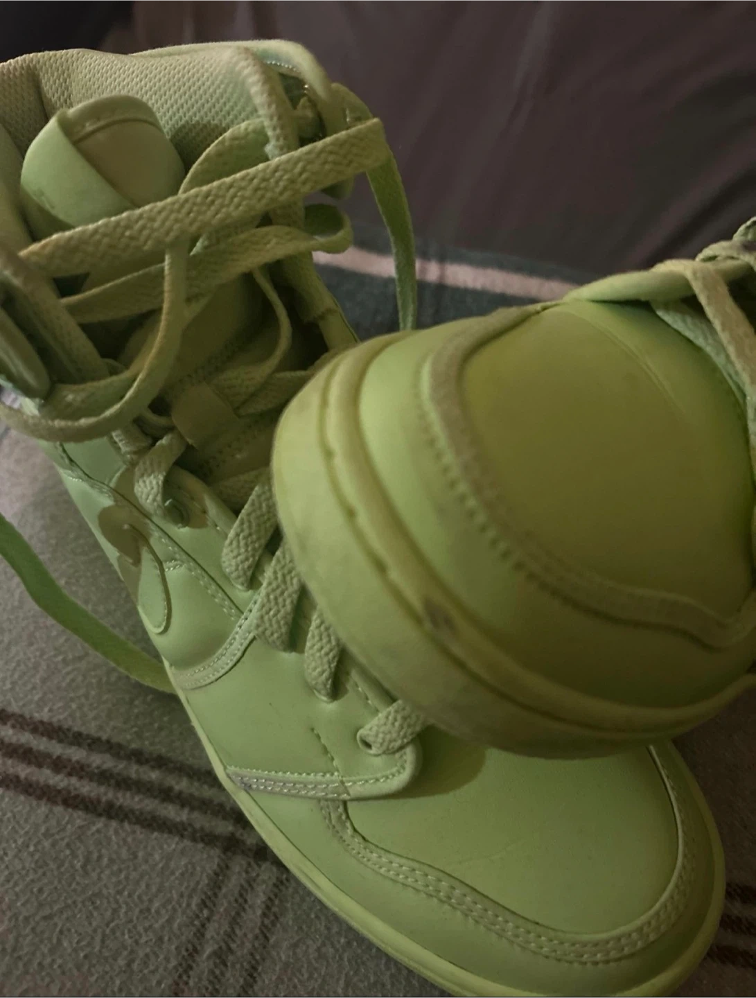 Selling a pair of Nike Air Jordan 1 High sneakers in a vivid green color. These shoes are in good condition and ready for a new home! They feature the classic Air Jordan 1 silhouette with a high-top design. Perfect for adding a pop of color to your wardrobe Billie Eilish Volt 2021 High Top Sneakers - Green