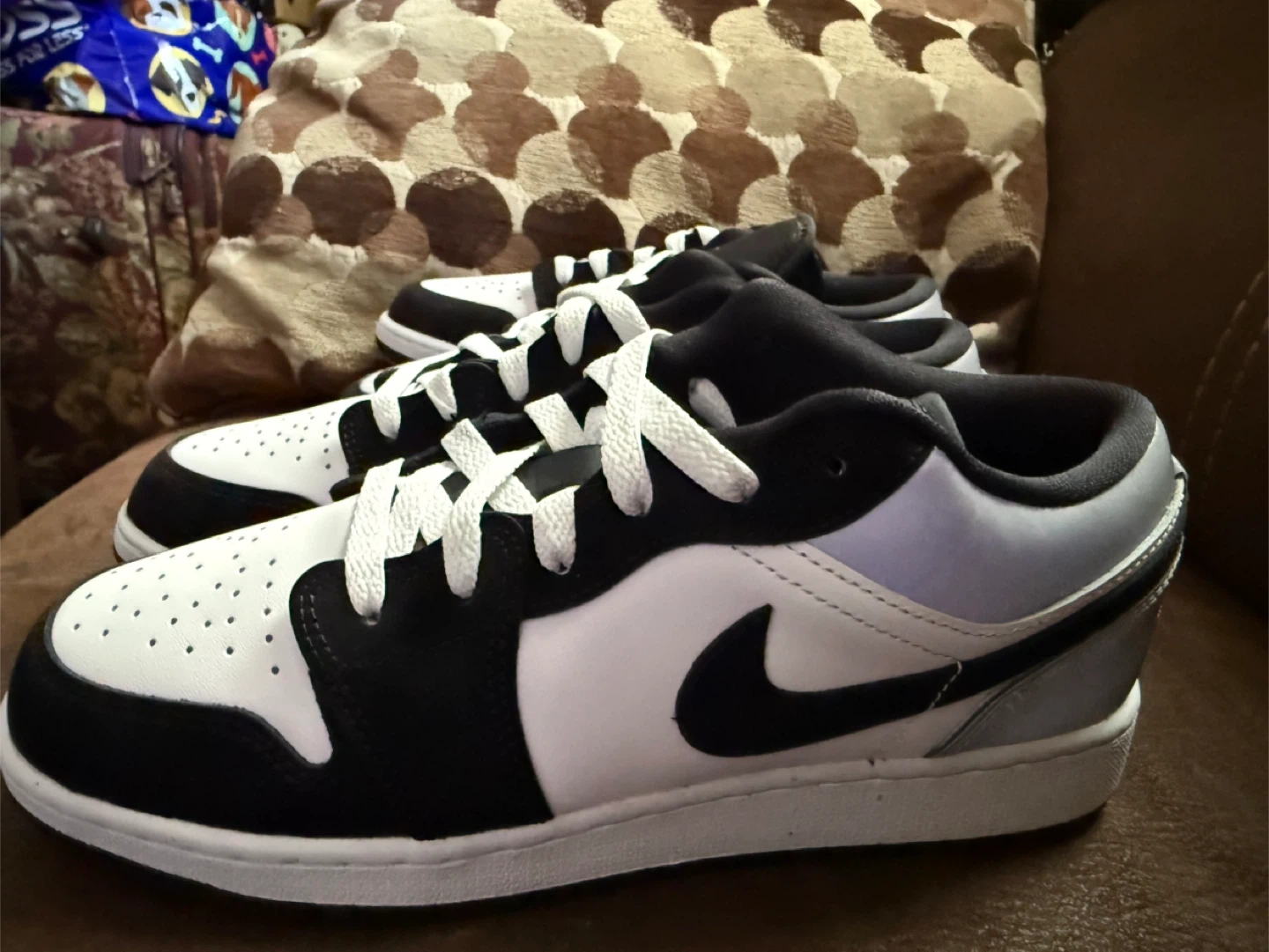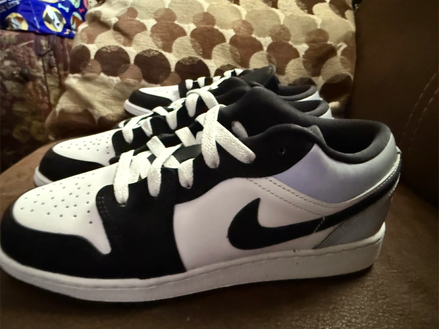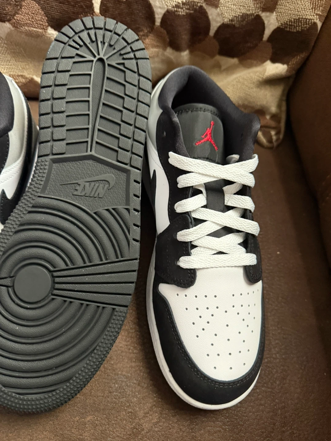 15Selling a pair of Nike Air Jordan 1 Low sneakers in a stylish black, white, and grey colorway. These shoes are in good condition and ready for a new home! The iconic Air Jordan design makes them a classic choice for any sneaker enthusiast