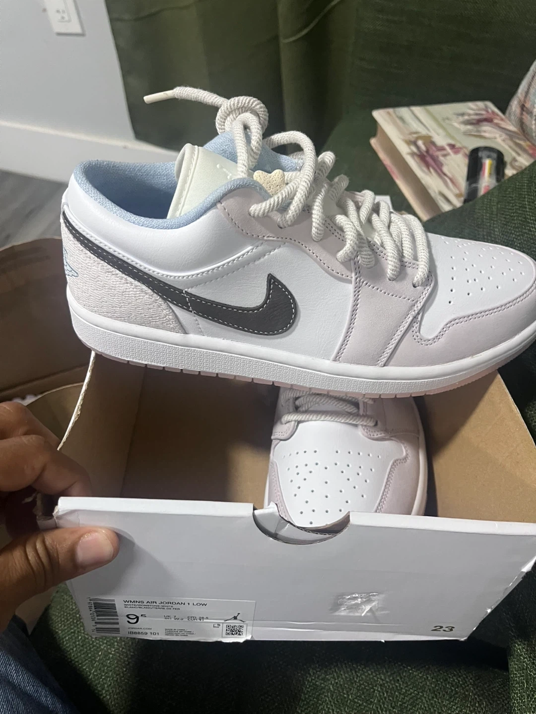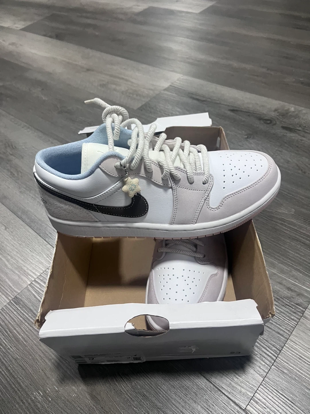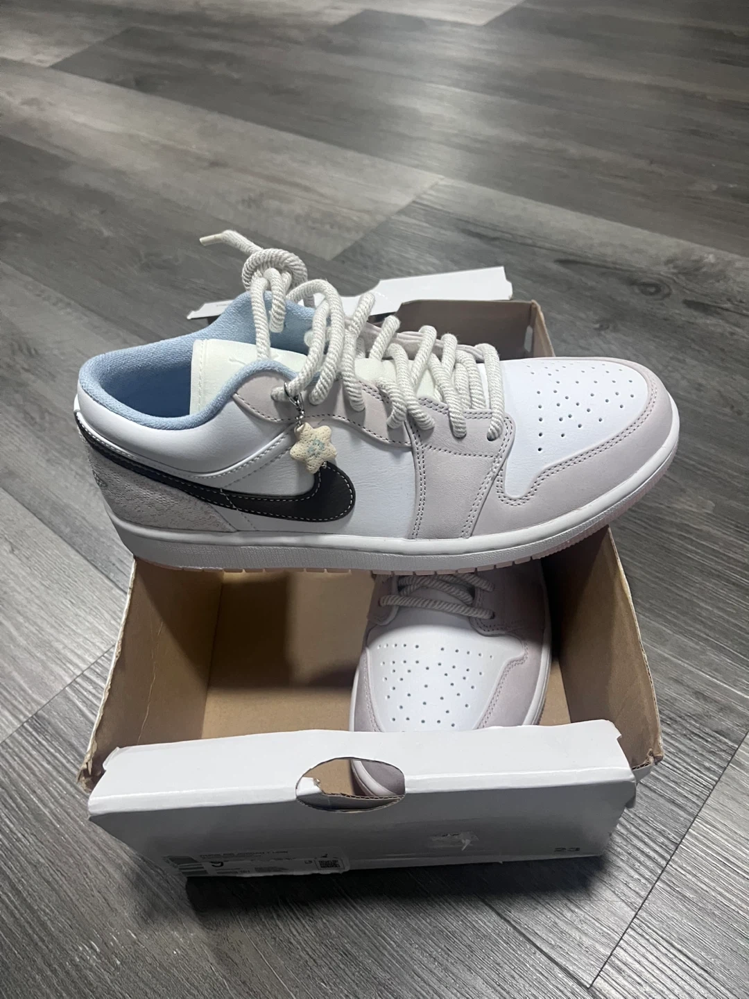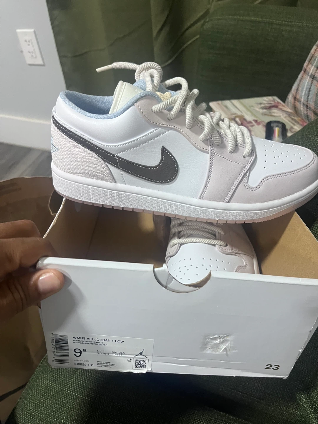 Selling a pair of Nike Air Jordan 1 Low sneakers for women, size 9.5. They come with the original box. Perfect for everyday wear!