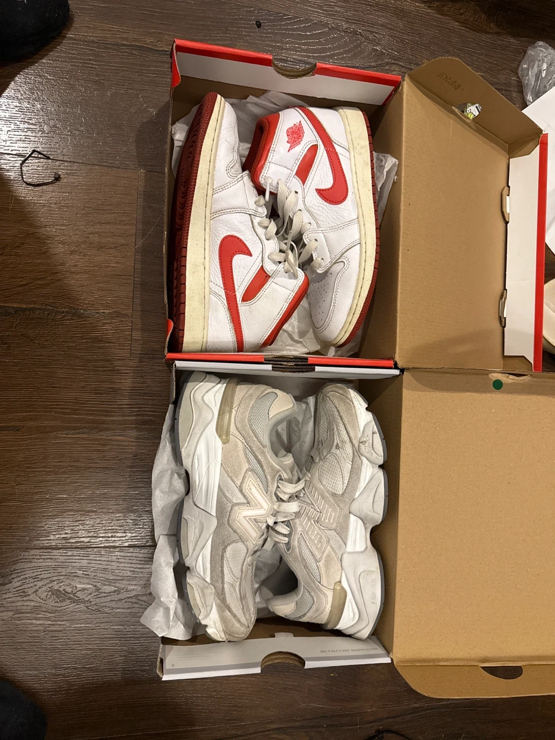 65Selling a pair of Nike Air Jordan 40$ and New Balance 9060 shoes 60$. Both come with their original boxes.