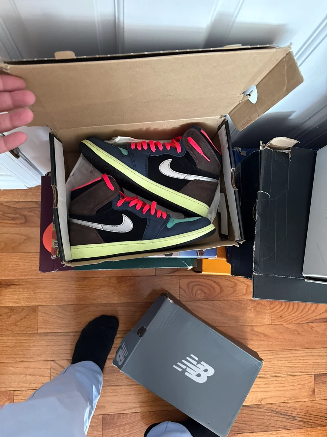 Selling a pair of Nike Air Jordan 1 Retro High OG sneakers. They come with the original box. Please check the photos for details on the color and condition. Feel free to ask any questions!