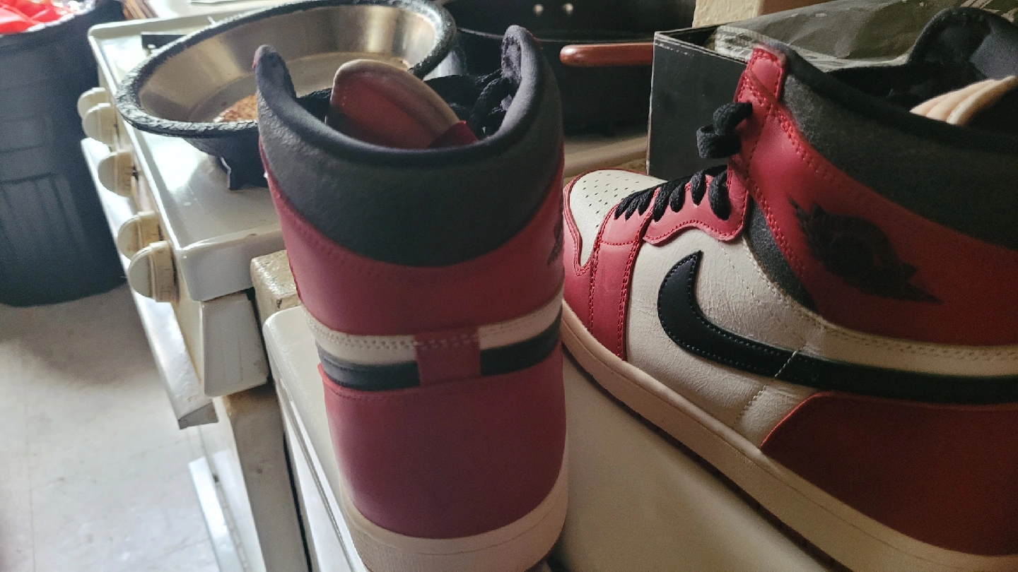 Selling a pair of Nike Air Jordan 1 Retro High sneakers in a classic red and white colorway! The shoes come with the original box. They have been gently used, with some minor signs of wear. Please see photos for details!