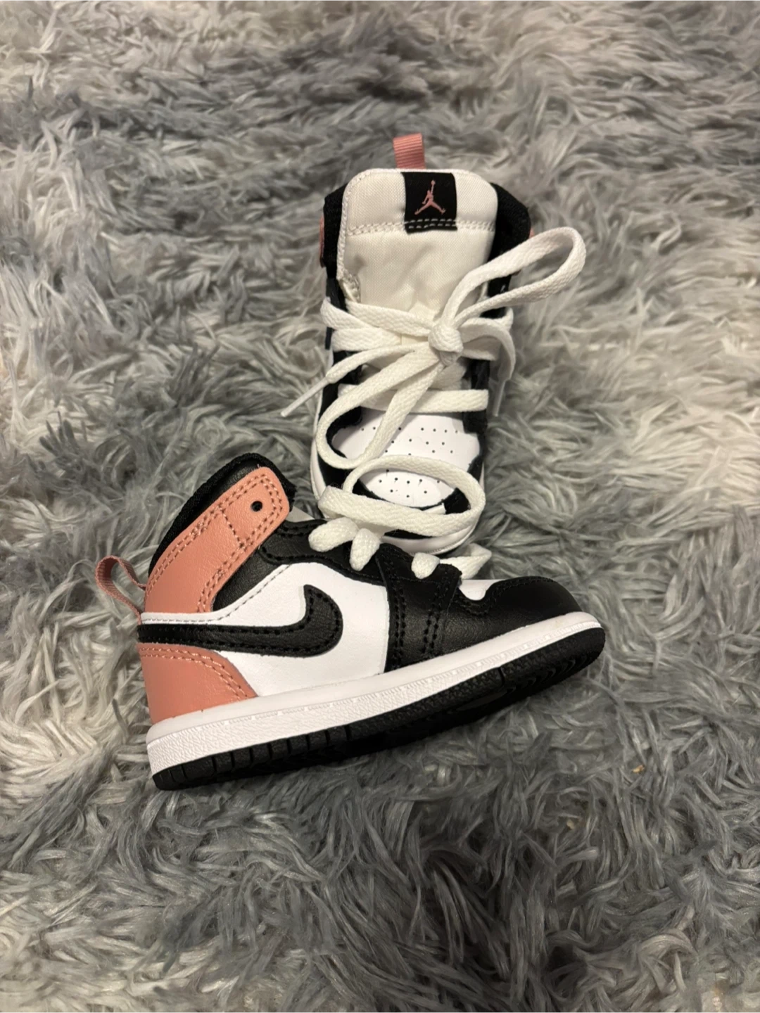 Super cute pair of toddler Nike Air Jordan 1s! They're in great condition and ready for a new home. The colorway is black, white, and pink. Perfect for your little one! Size 4C