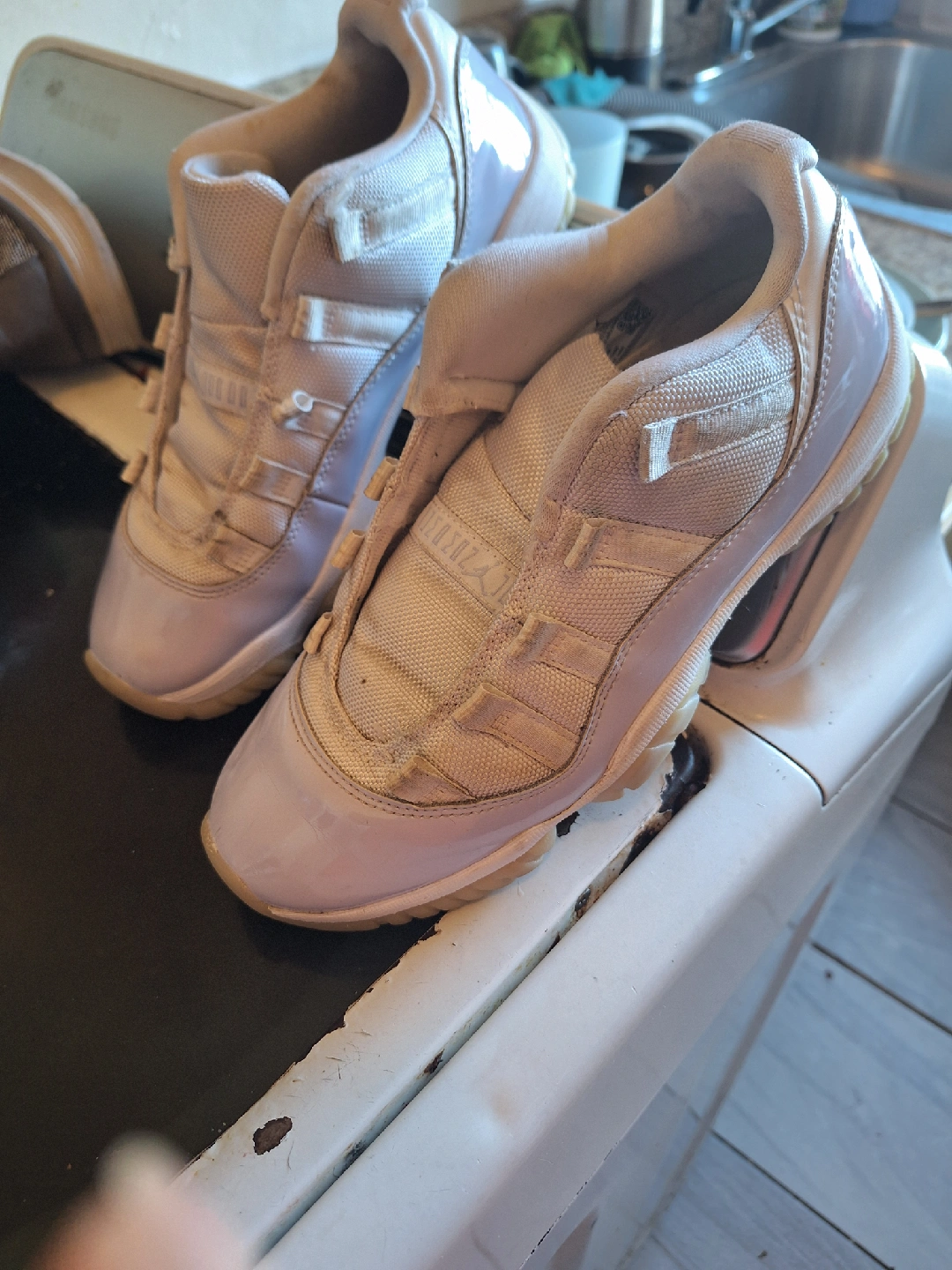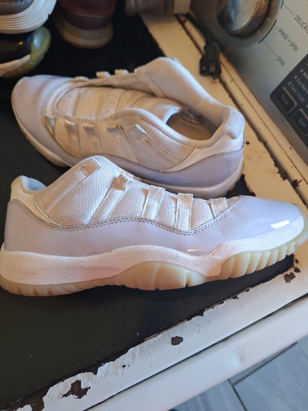 62Selling a pair of Nike Air Jordan 11 Retro Low sneakers in white. They show some signs of wear, but still have plenty of life left! Perfect for casual wear or hitting the court