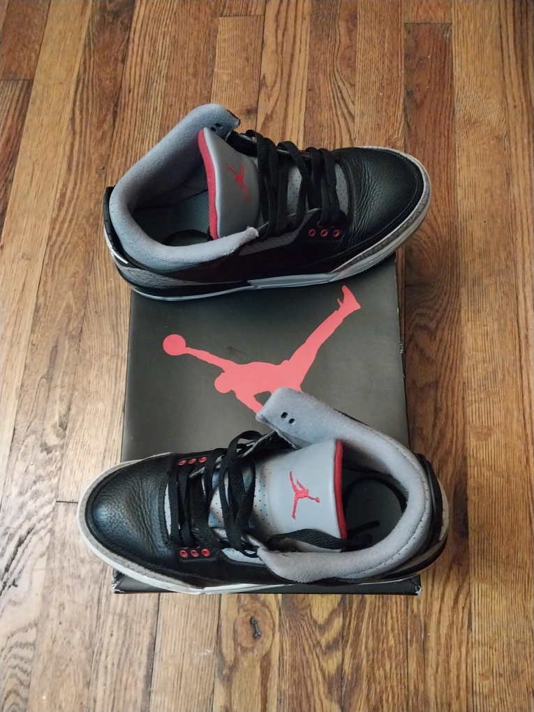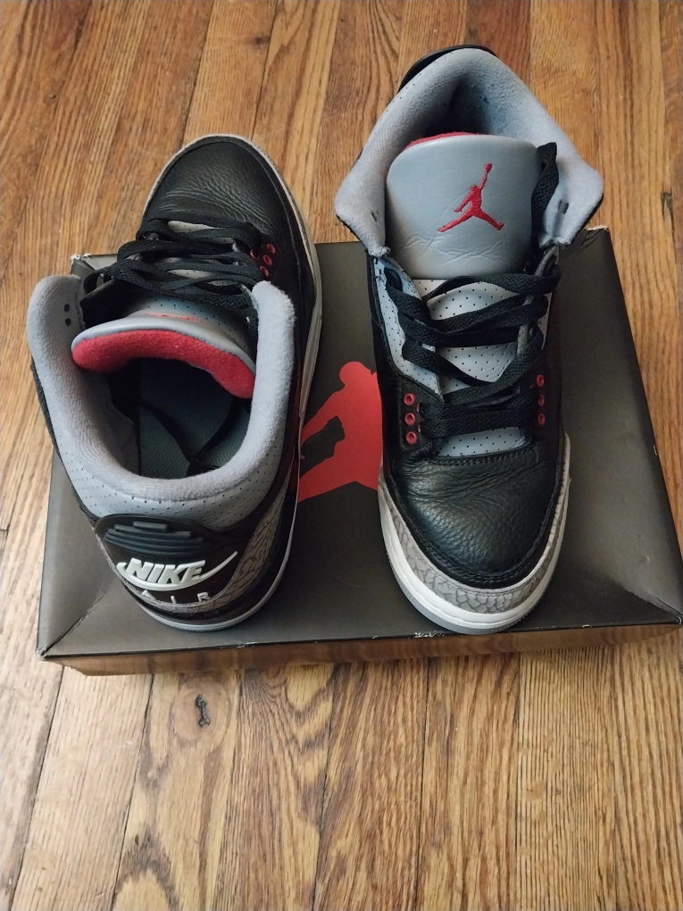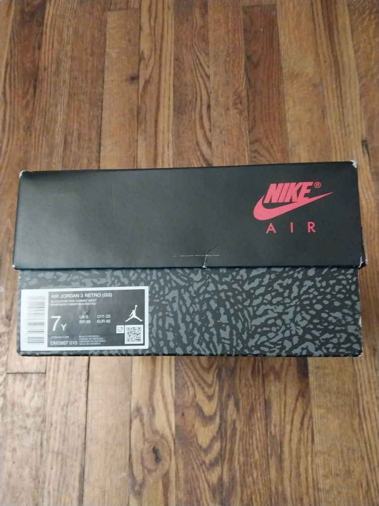 Selling a pair of slightly uesd Jordan 3 Retro GS in size 7Y! They come with the original box. These are a stylish and comfortable pair of sneakers.