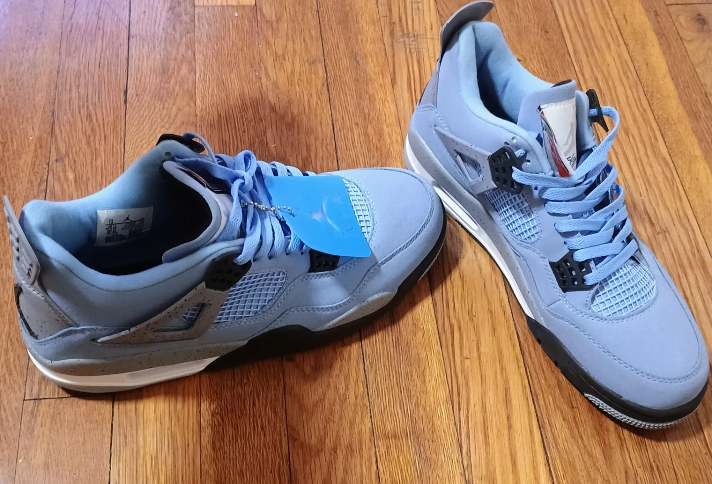 15Selling a pair of Nike Air Jordan 4 Retro in the University Blue colorway. These shoes are in great condition and ready for a new home! They feature a stylish design and comfortable fit, perfect for everyday wear or adding to your collection