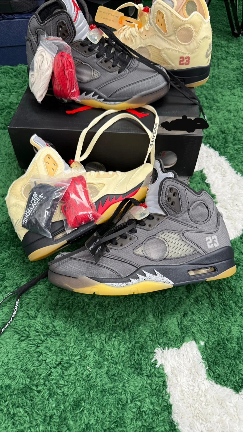 60Selling a pair of Nike Air Jordan 5 Off-White sneakers! They come with the box and extra laces.
