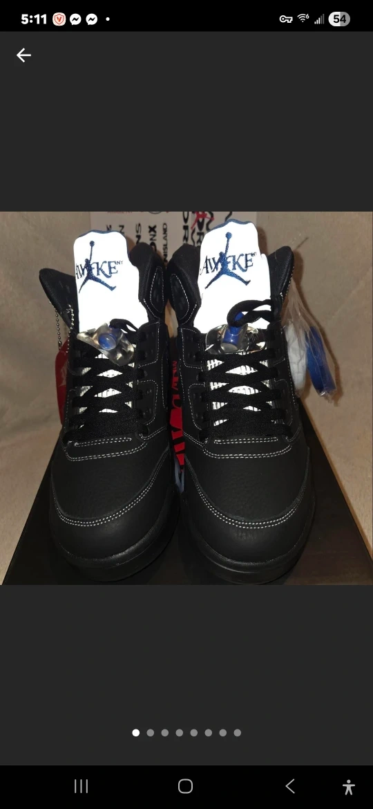 76Comes with stock x receipt and tags Selling a pair of Nike Air Jordan 5 Retro SP Awake NY in black. These shoes are in great condition and come with the original box. They feature the iconic Air Jordan design with a unique Awake NY twist. Perfect for sneakerheads and basketball fans alike!