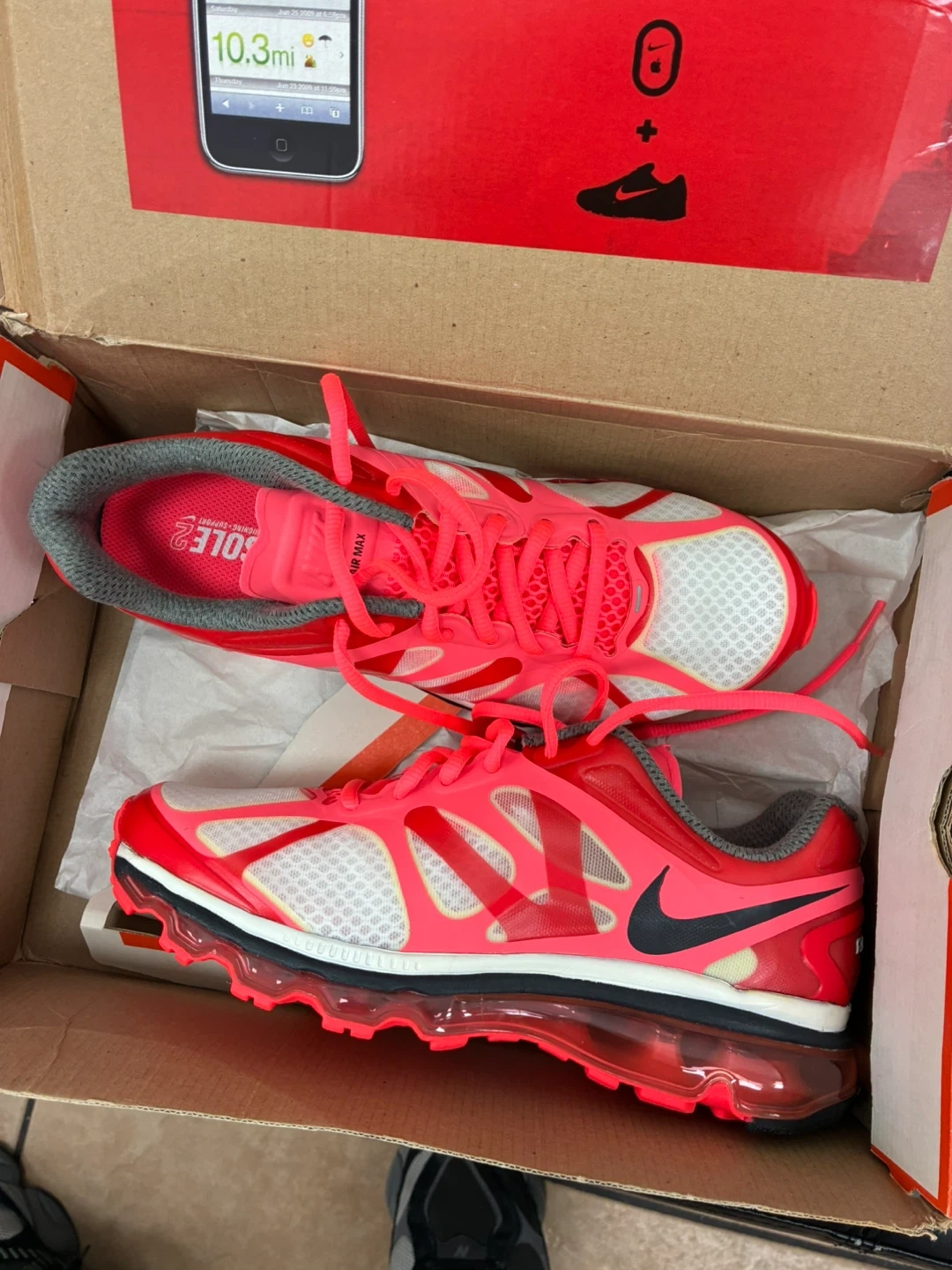 10Selling a pair of Nike Air Max 2009 running shoes. They are in good condition and come with the original box. The shoes feature a vibrant red and white color scheme with the iconic Nike swoosh. Perfect for running or casual wear!