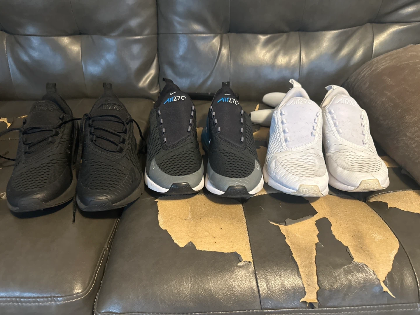 15Selling a collection of Nike Air Max 270 sneakers! These are stylish and comfortable shoes, perfect for everyday wear or workouts. Check out the photos for the different color options and condition details. They're ready for a new home!