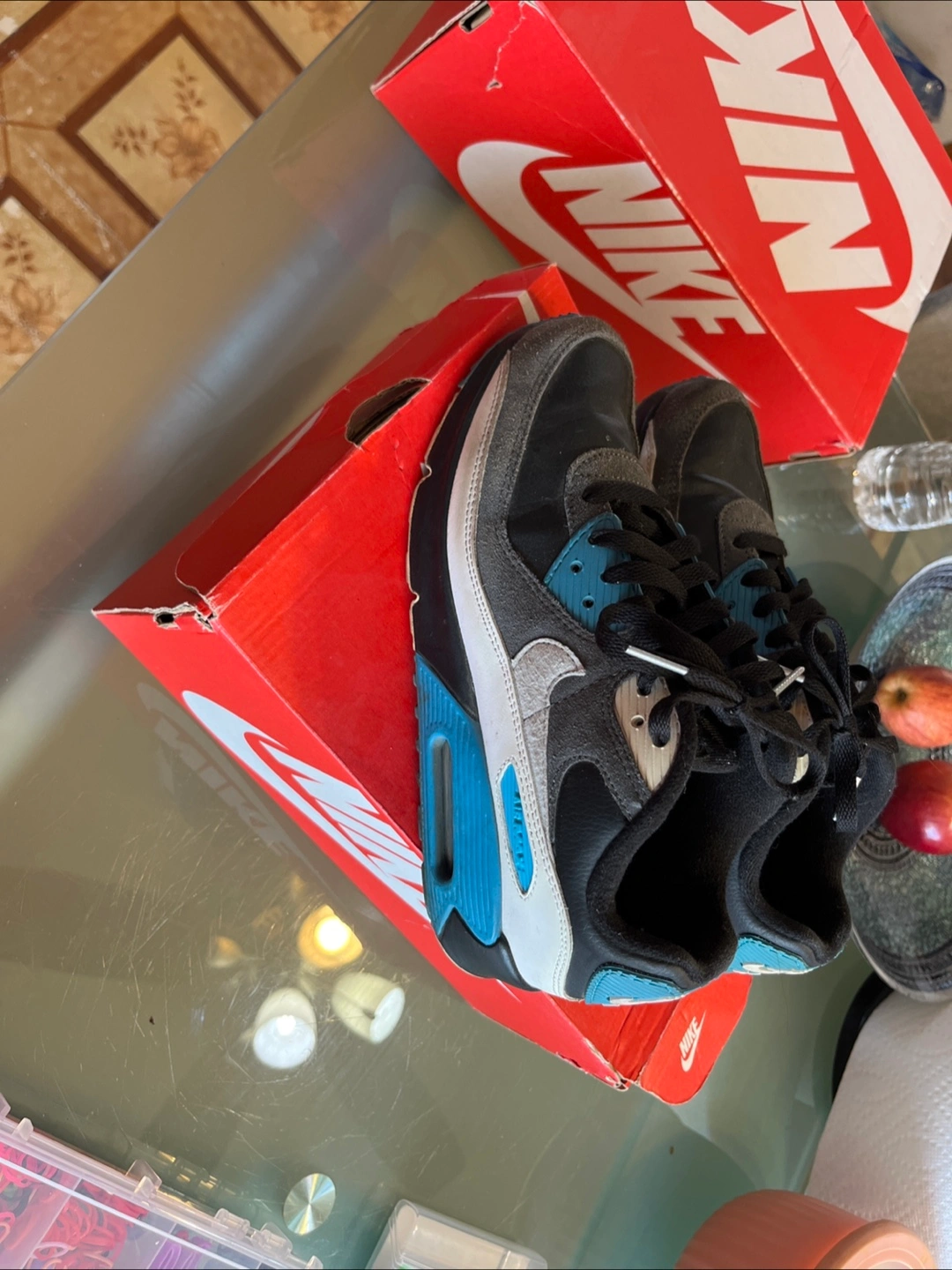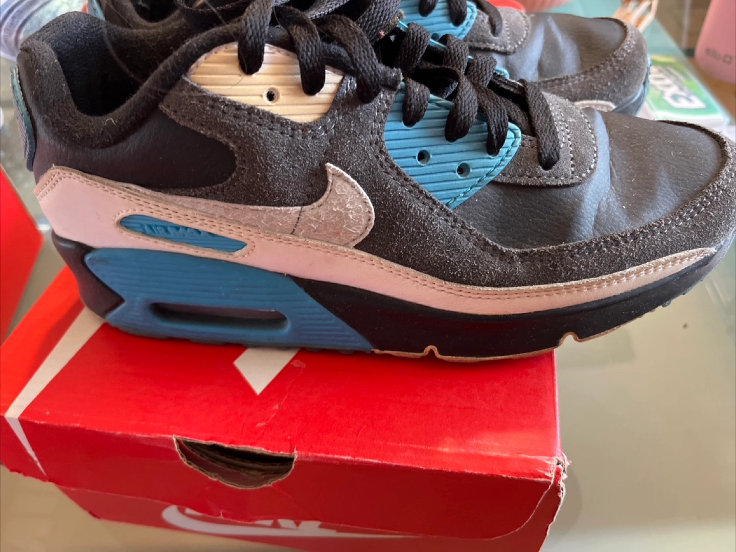 65Selling a pair of Nike Air Max 90 sneakers! They come with the original box. These are a stylish and comfortable pair of shoes, perfect for everyday wear normal wear signs. Size 5.5 women.