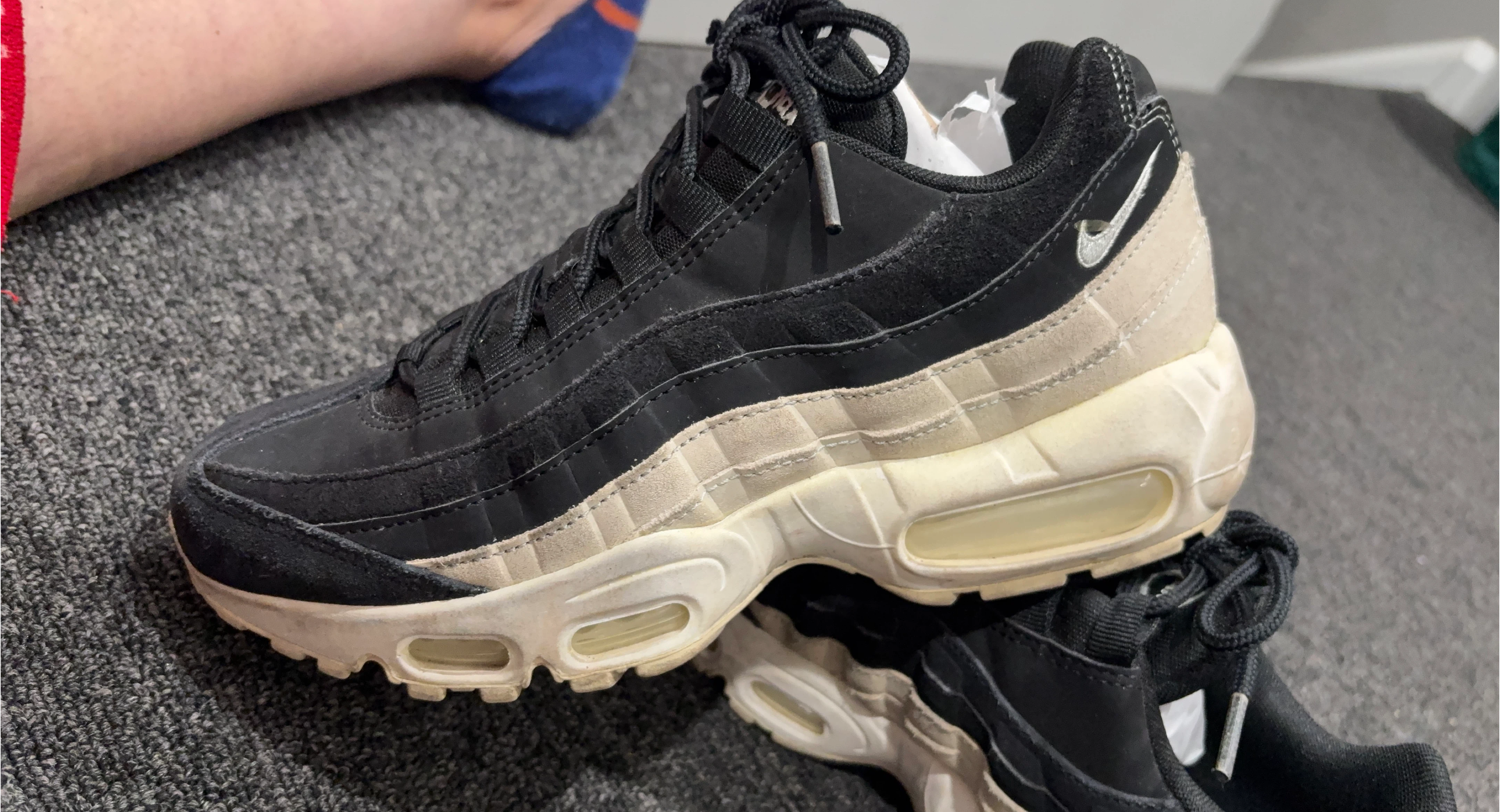 10Selling a pair of Nike Air Max 95s in a black and cream colorway. They show some signs of wear but are still in good condition and have lots of life left!