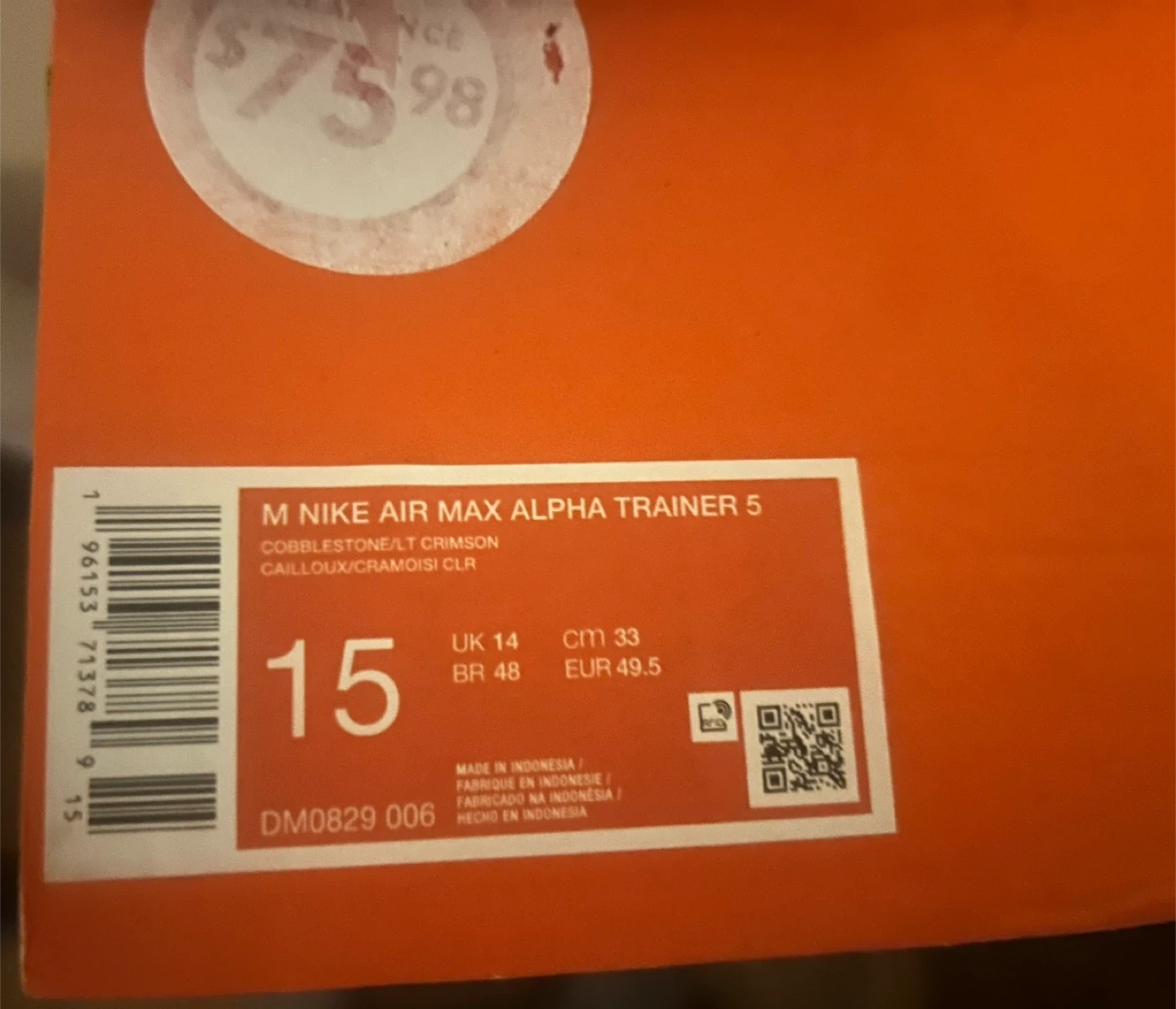 Nike Air Max Alpha Trainer Men’s US 15 Red/Tan/White/Gray Comes with Gray Shoelaces and White Shoelaces. Very comfortable. Originally $75.98