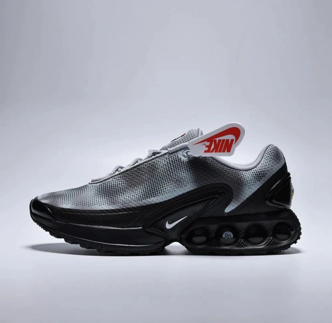 Selling a pair of Nike Air Max Dn sneakers. These have a sleek gray and black design that’s sure to turn heads. The Air Max Dn features the iconic Nike swoosh and a comfortable, cushioned sole for all-day wear. A great addition to your footwear collection!