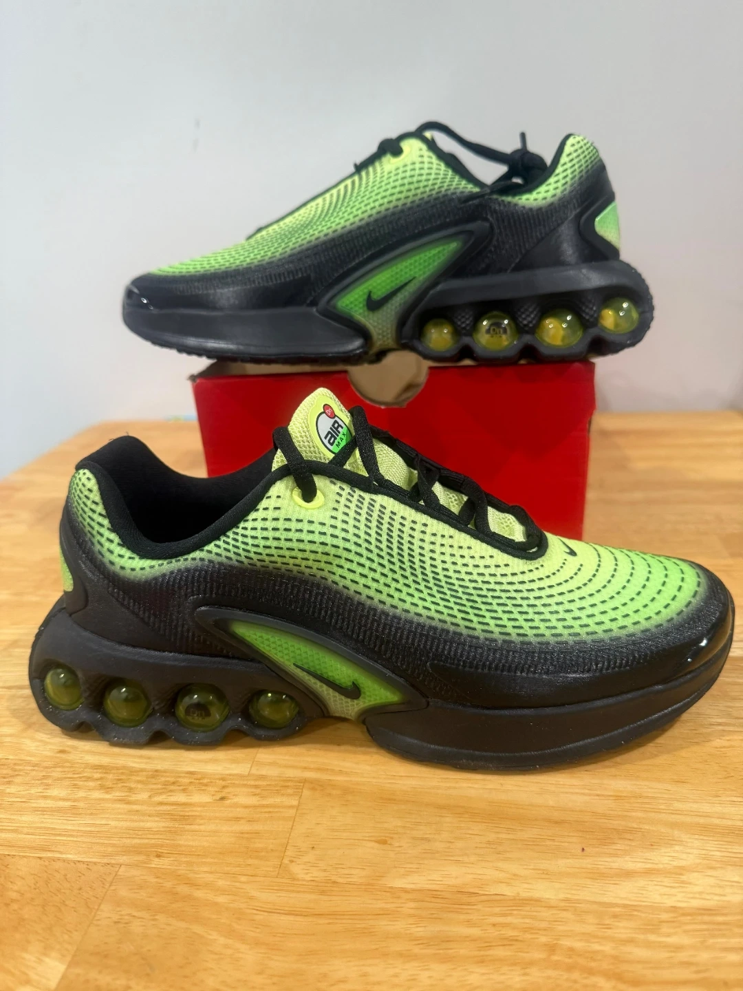 60Selling a pair of Nike Air Max TN AMD (GS) in neon green and black. They are size 6.5. The box is included!