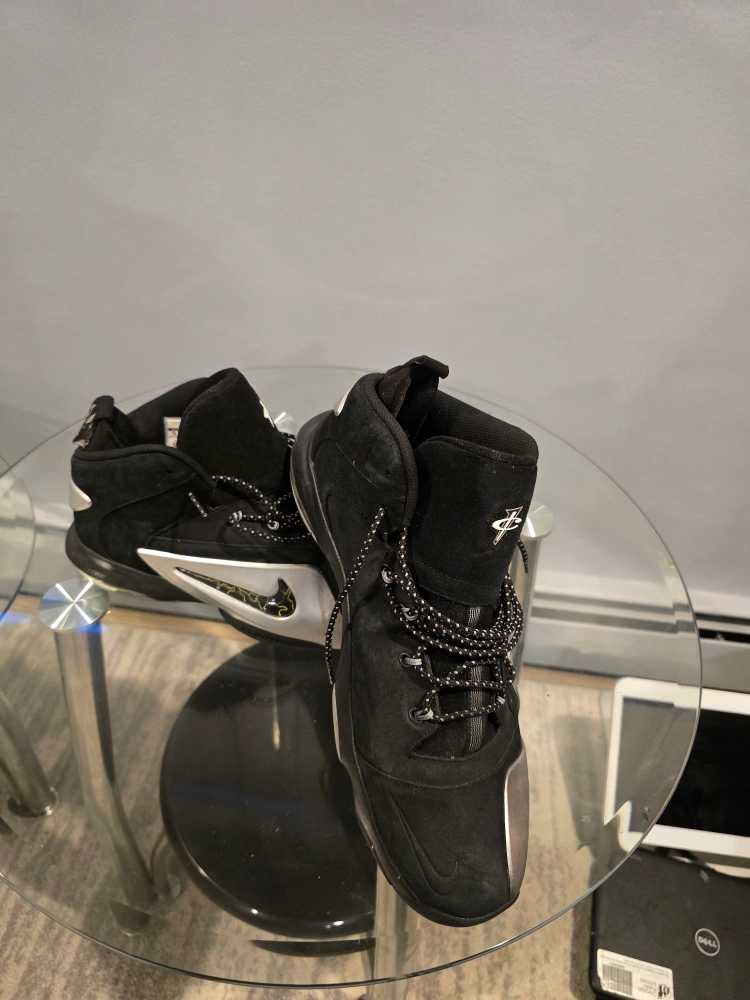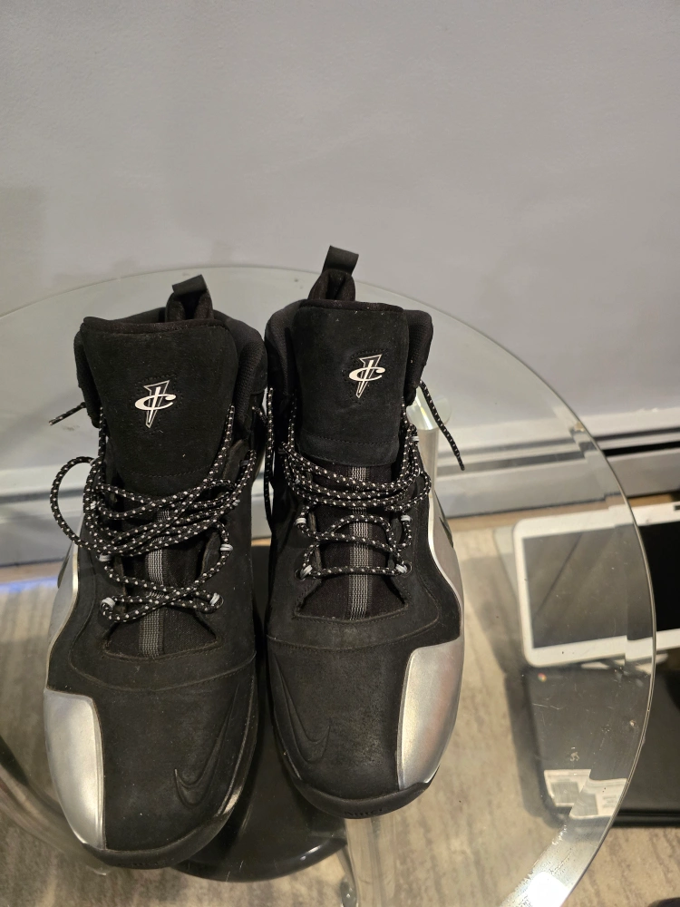 15Selling a pair of Nike Air Penny 2 sneakers in black and metallic silver. These are in good condition and ready for a new home. The design features the iconic Penny Hardaway logo. Perfect for basketball or casual wear!