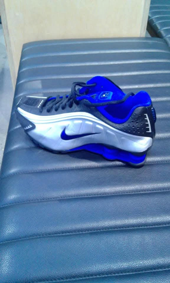 Selling a pair of Nike Air Total Max Uptempo sneakers. These are in good condition and feature a blue, black, and white color scheme. Perfect for sports or casual wear!