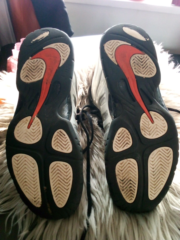 Selling a pair of Nike basketball shoes in size 6Y. They're black with red accents. Please see photos for condition