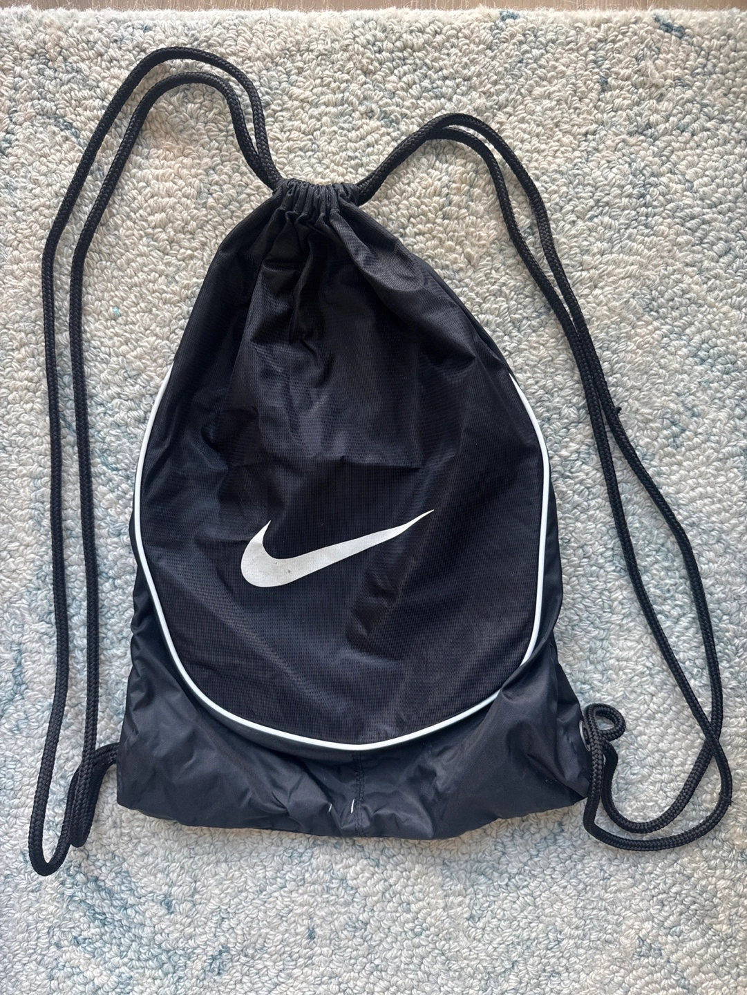 280Black Nike drawstring bag. Great for gym, sports, or travel. Lightweight and easy to carry. Used.