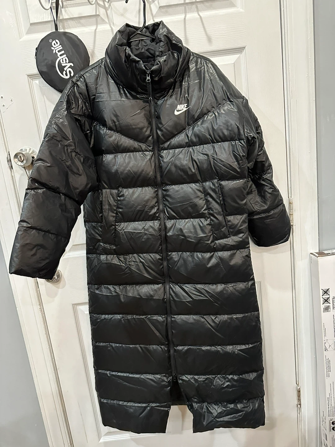 Selling a black Nike puffer coat. It's in great condition and ready to keep you warm! Perfect for the colder months, this coat is both stylish and functional