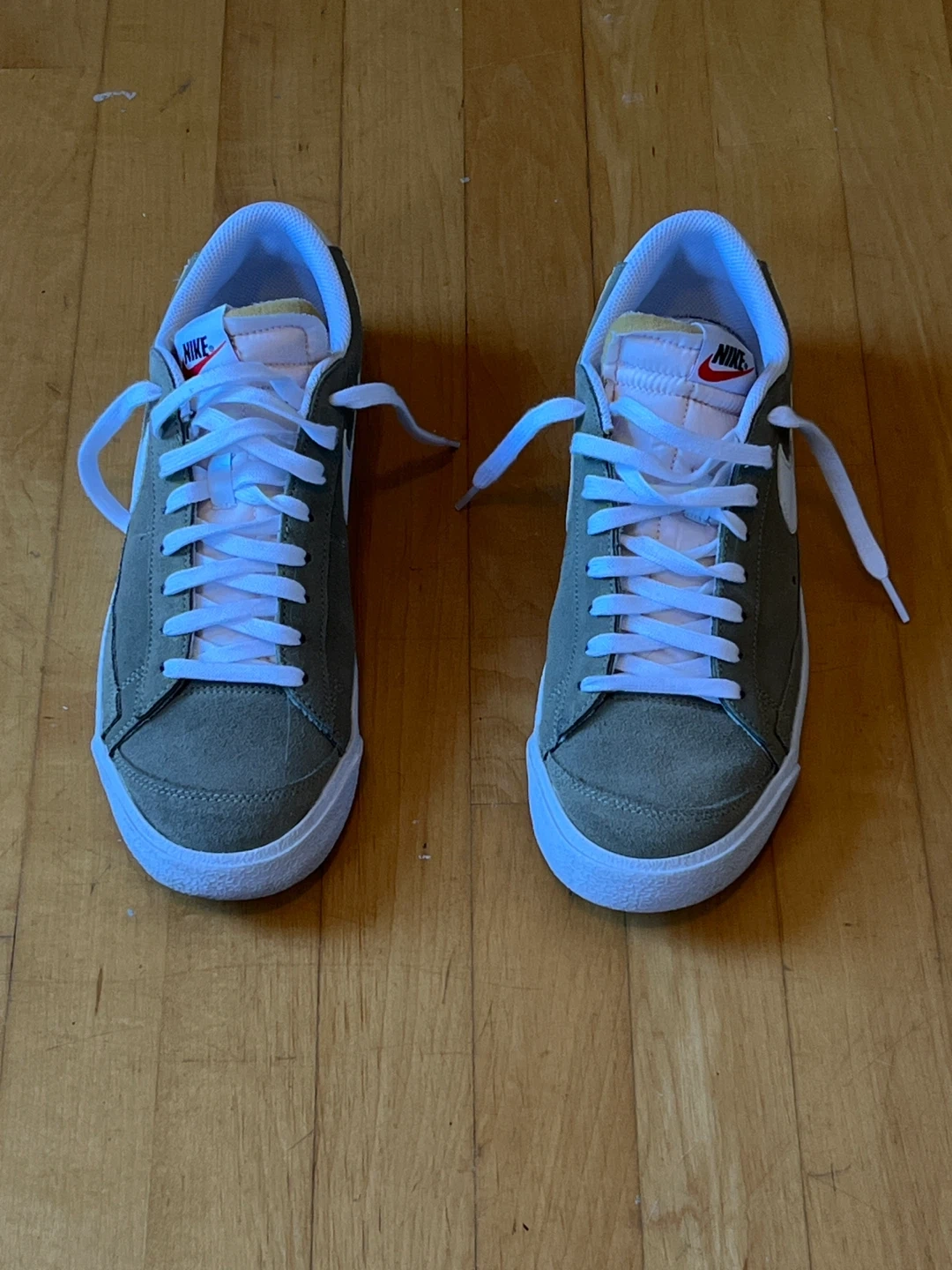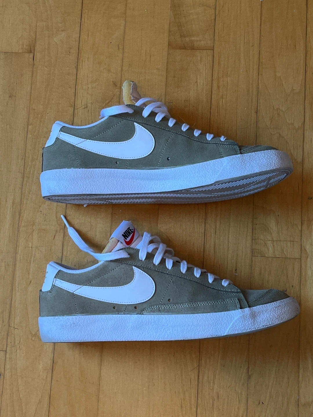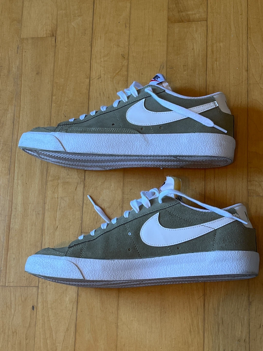 10Selling a pair of Nike Blazer Low Platform sneakers in an olive green color. Like new, worn a handful of times. Tread in great condition