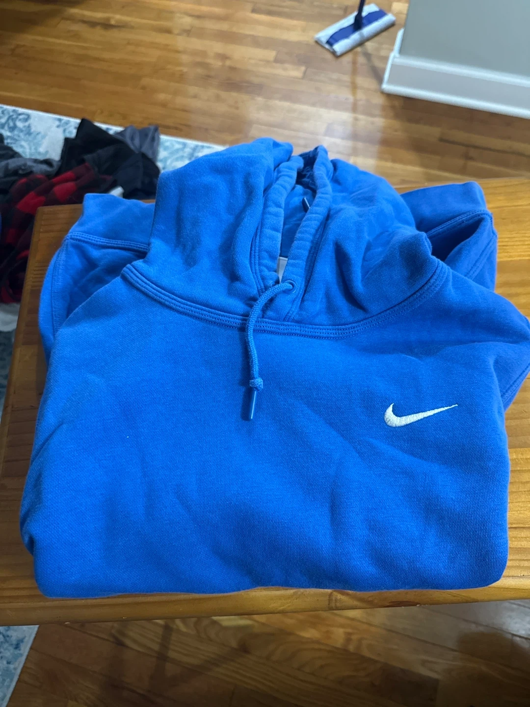 10I'm selling a blue men’s small Nike hoodie. It features the Nike swoosh logo on the chest. Perfect for everyday wear!