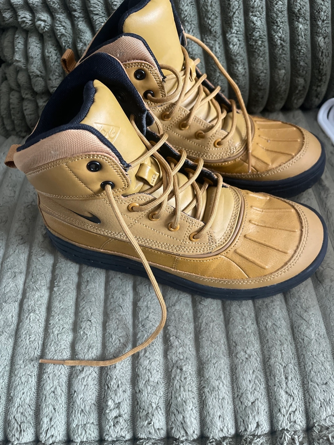Selling a pair of Nike boots in great condition! They are a size 5.5 youth and have a tan color. Perfect for the fall or winter season!
