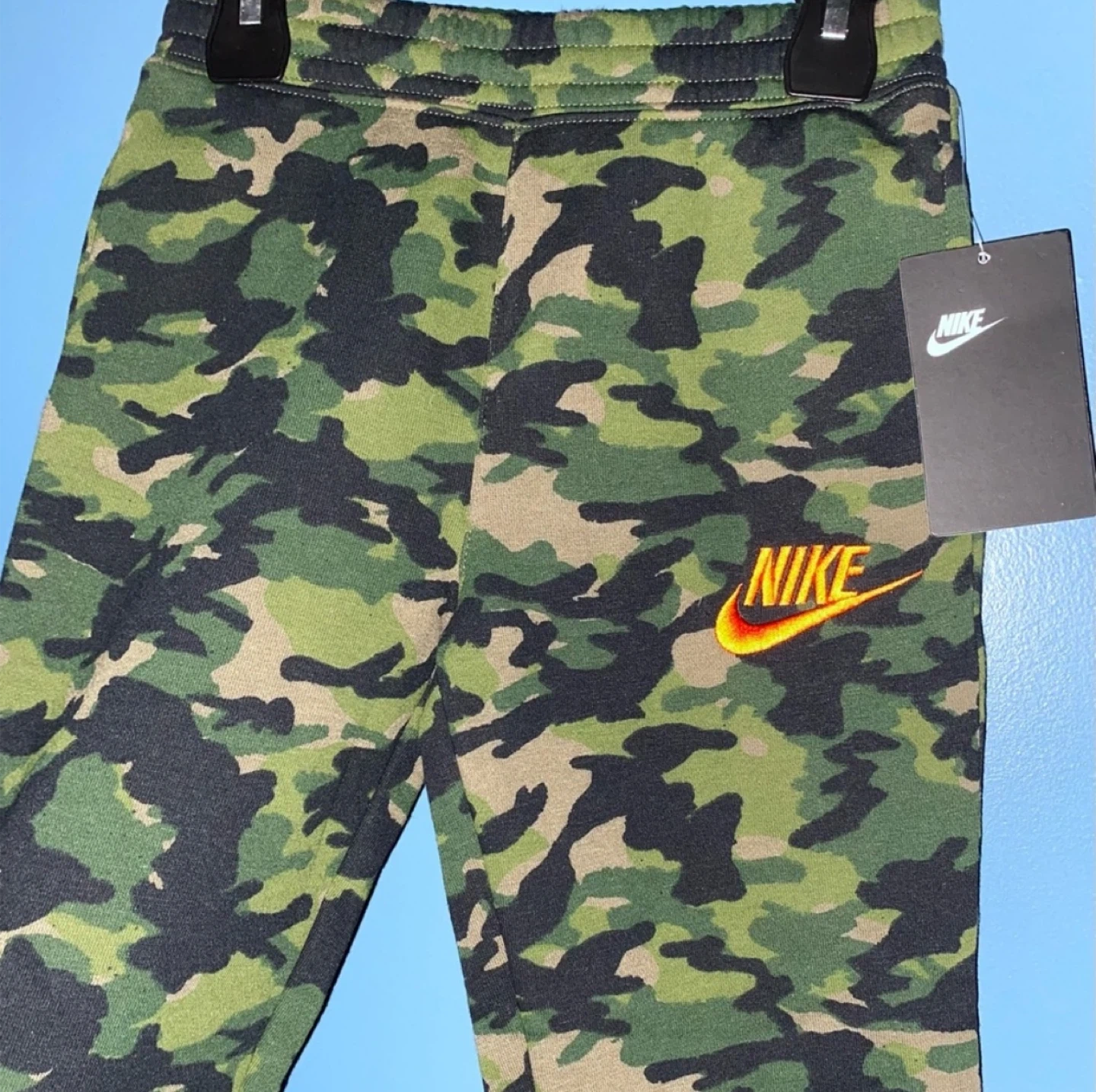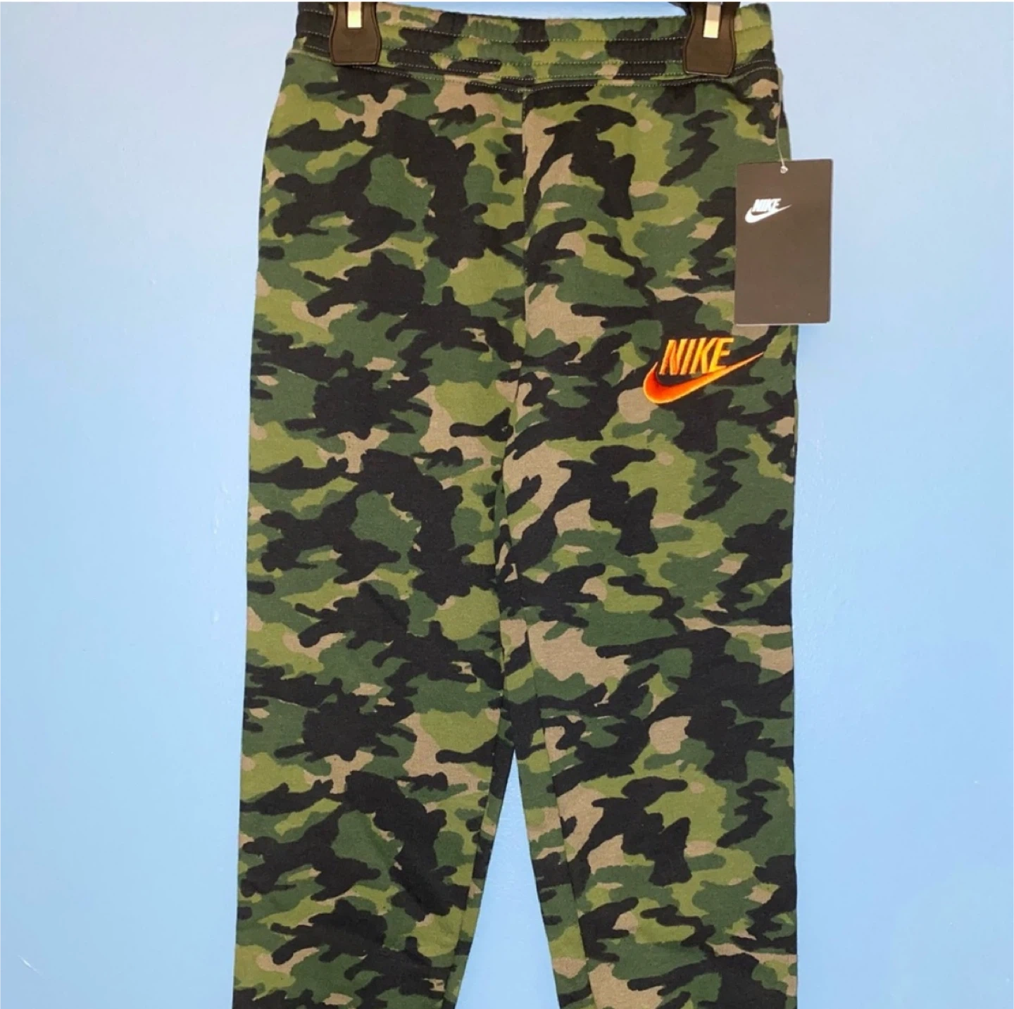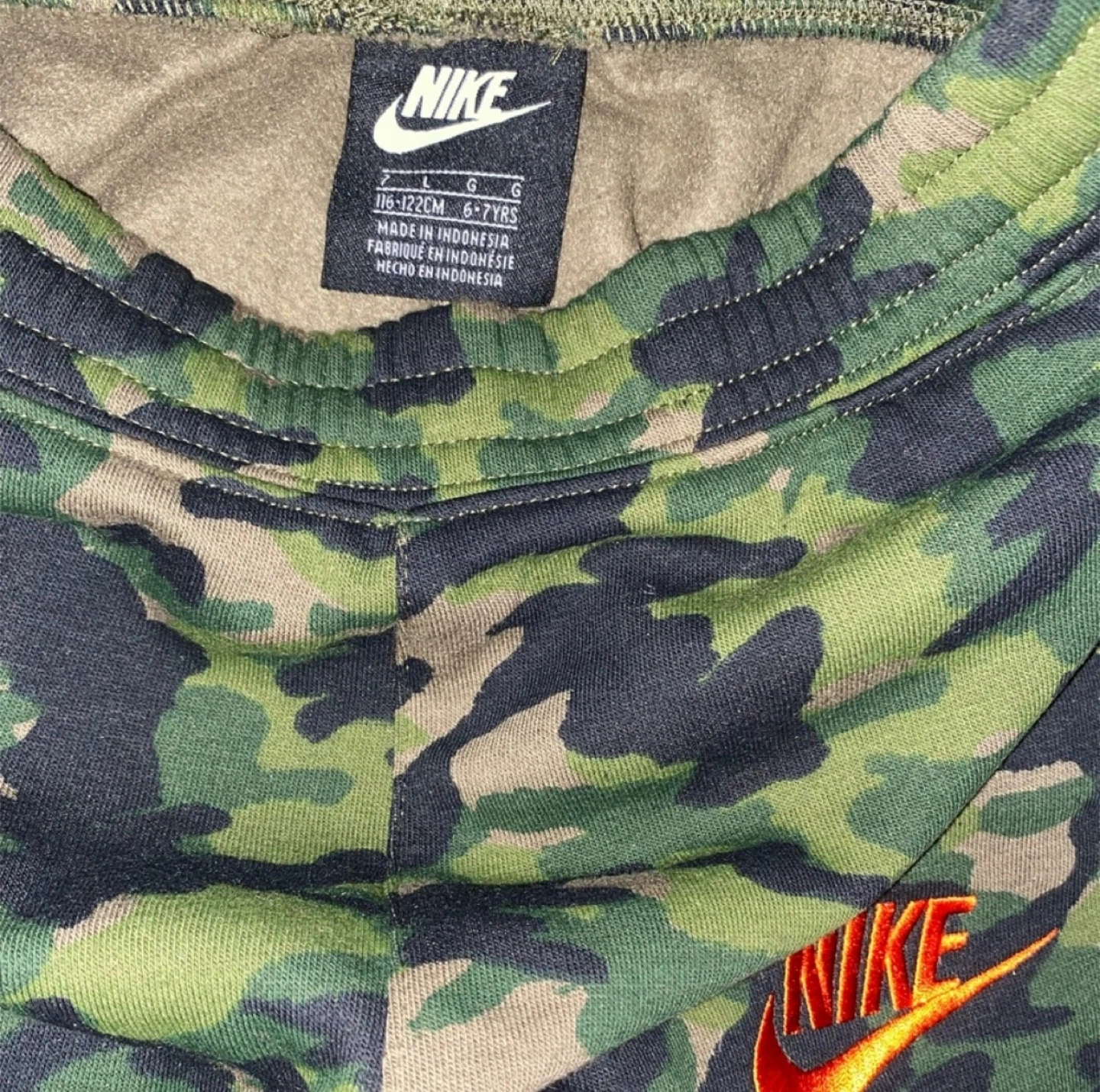 These Nike camo joggers are in excellent condition and ready for a new home! They're a size 7L (6-7 years) and feature a cool camouflage pattern with the Nike logo. Perfect for your little one to wear while playing or lounging around