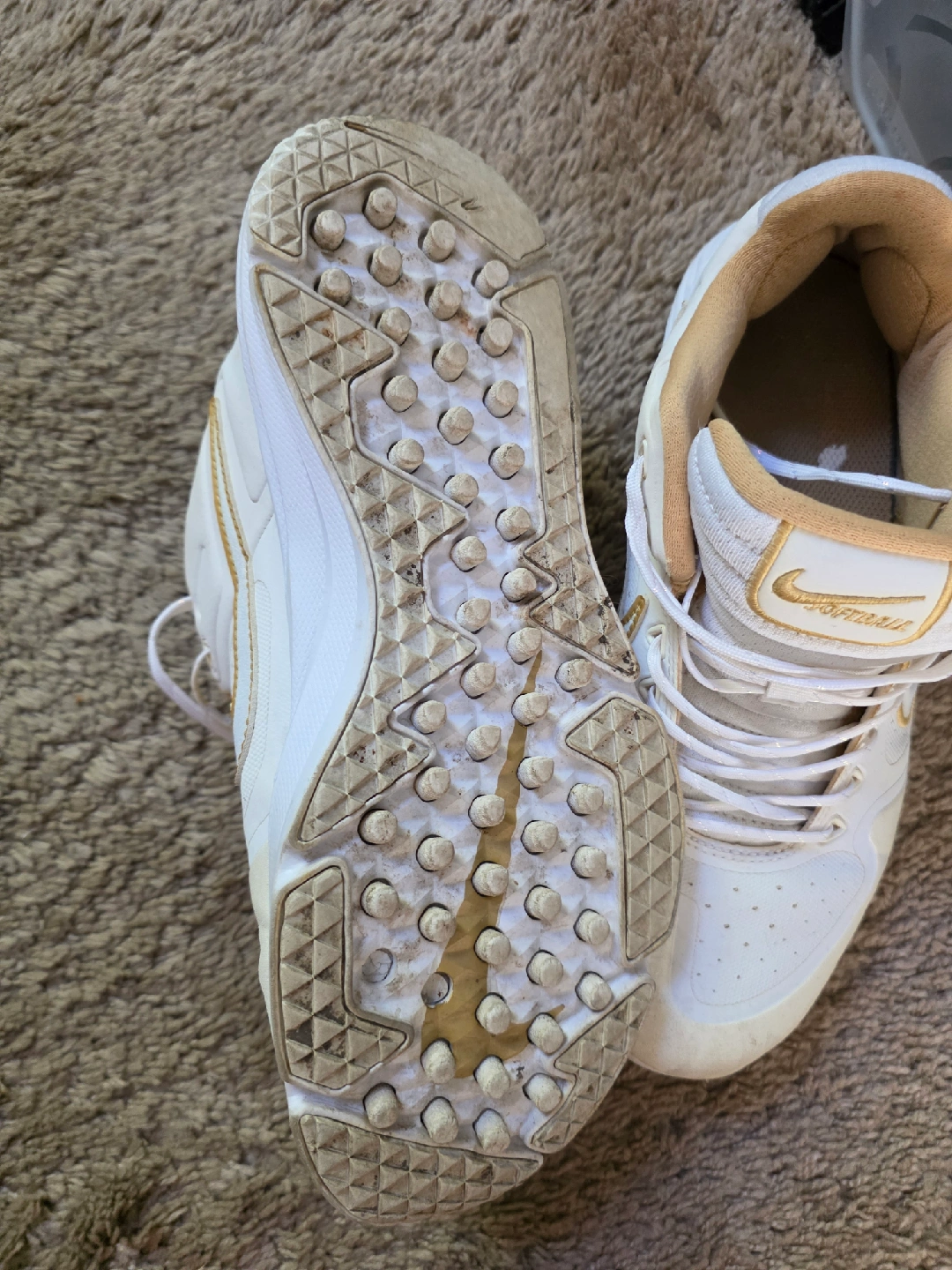 Selling a pair of Nike softball cleats, model CJ9888-100 in size 9 US. They show some signs of use, but still have plenty of life left! Perfect for your next game!