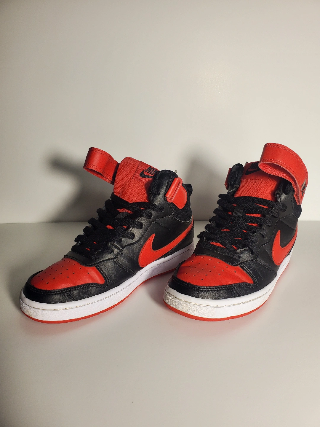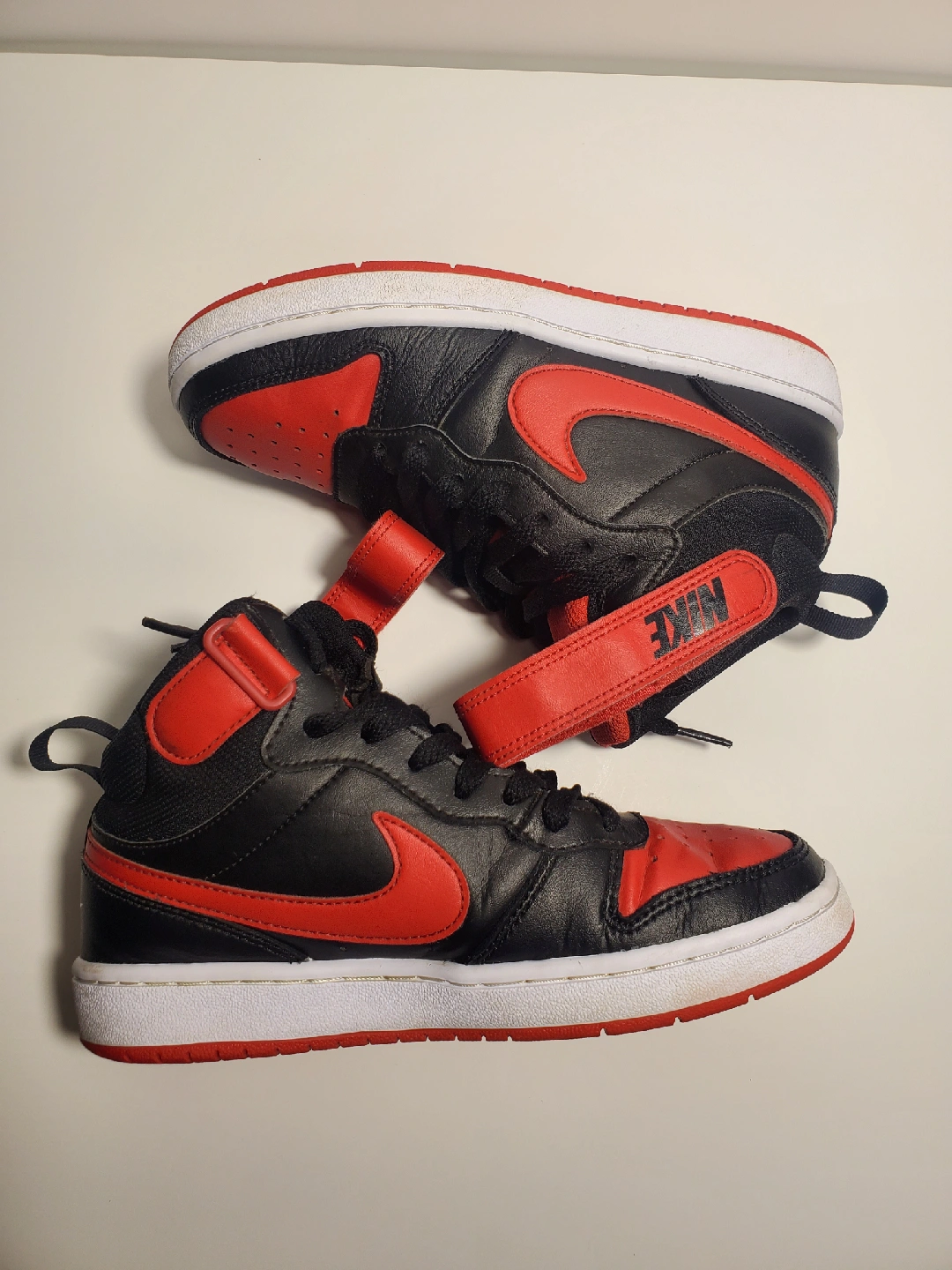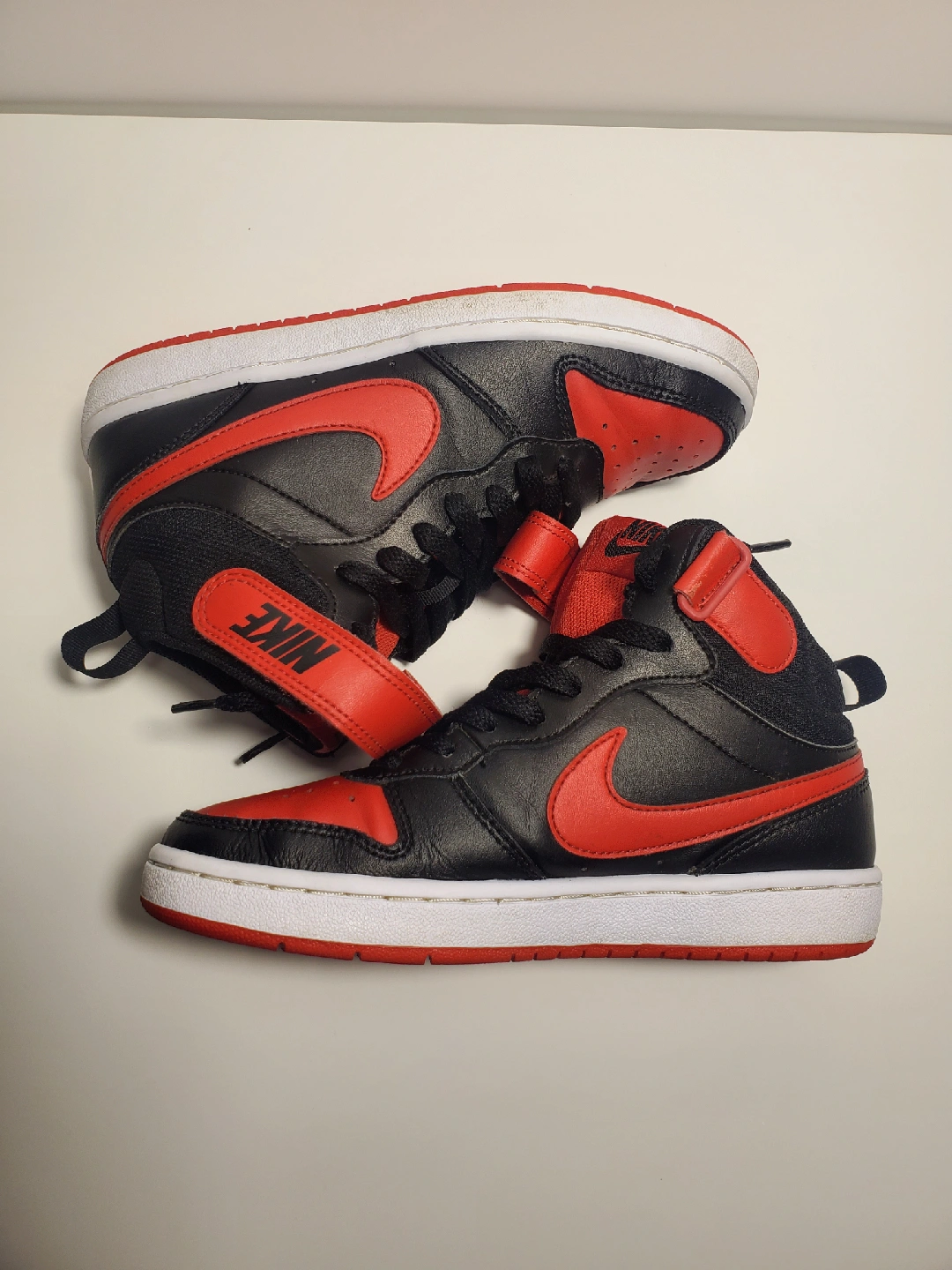 Pre-Loved Kids Nike Court Borough Mid 2 Black University Red (GS) CD7782-003 Size 4Y Brand: Nike Color: Black and Red Size: 4Y Style Number: CD7782-003 Does not come with box Creasing on the fronts The bottom soles are pretty clean; there are some markings Please see pictures for imperfections Good Condition