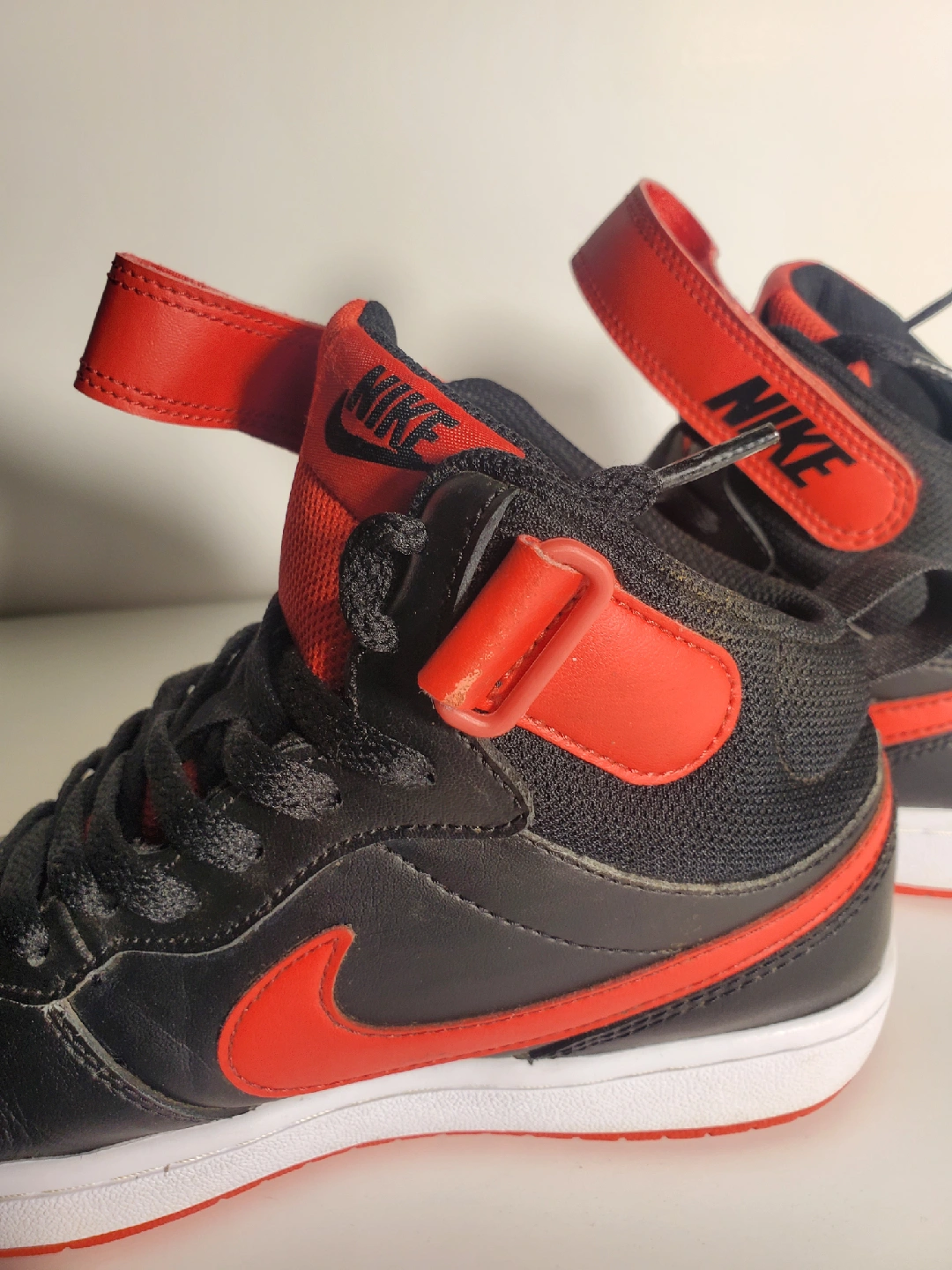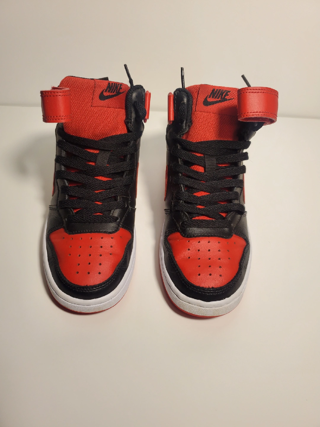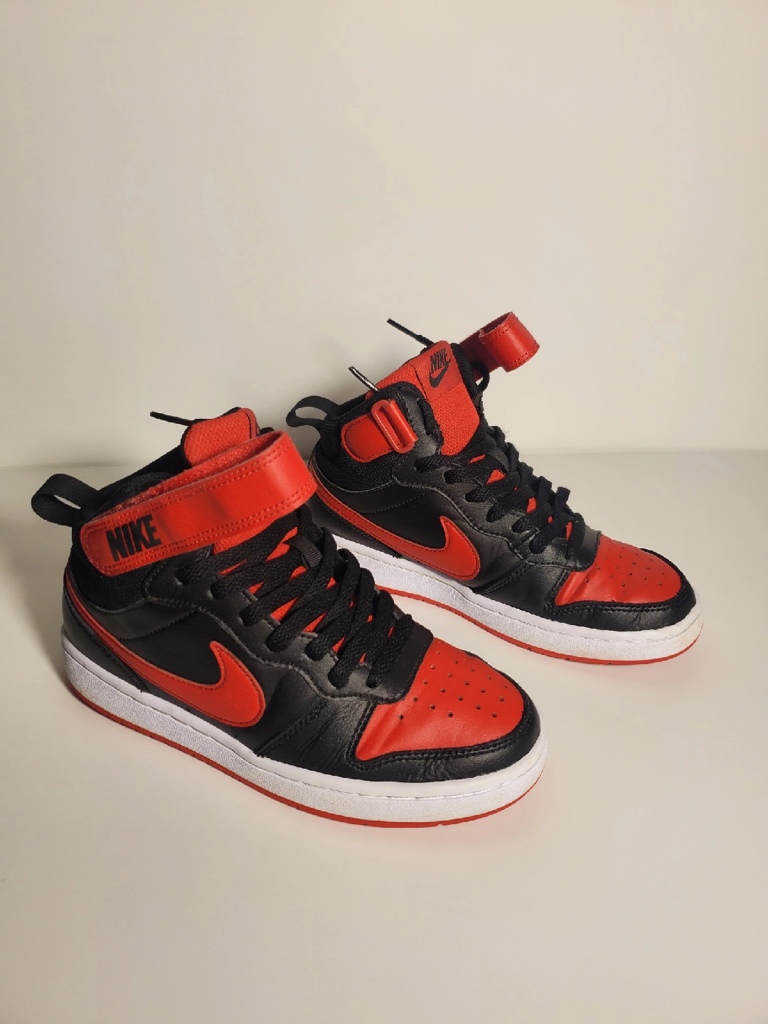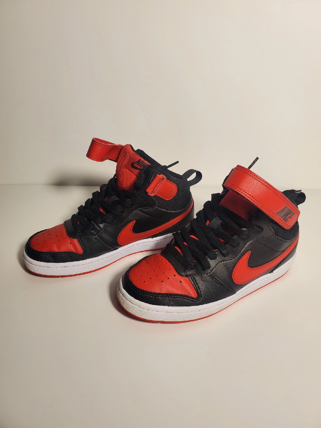 Pre-Loved Kids Nike Court Borough Mid 2 Black University Red (GS) CD7782-003 Size 4Y Brand: Nike Color: Black and Red Size: 4Y Style Number: CD7782-003 Does not come with box Creasing on the fronts The bottom soles are pretty clean; there are some markings Please see pictures for imperfections Good Condition