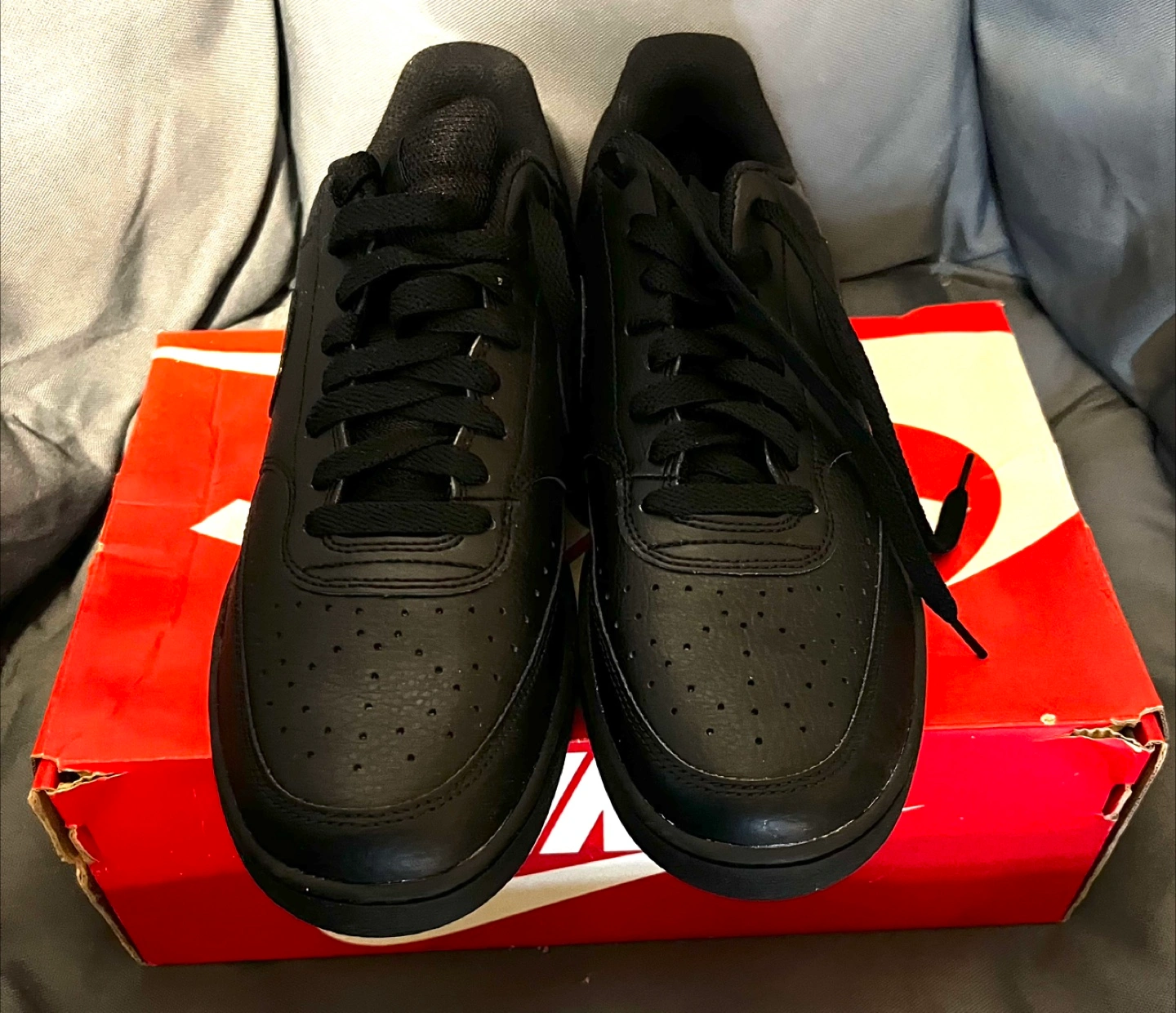 Men's Nike Court Vision Low sneakers. Black leather. Size 10 UK, 42 EUR. New in box.